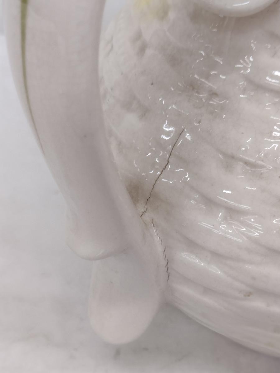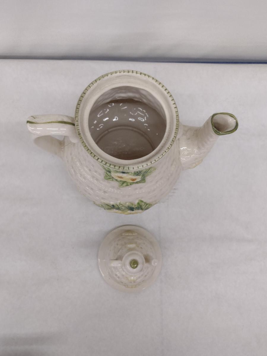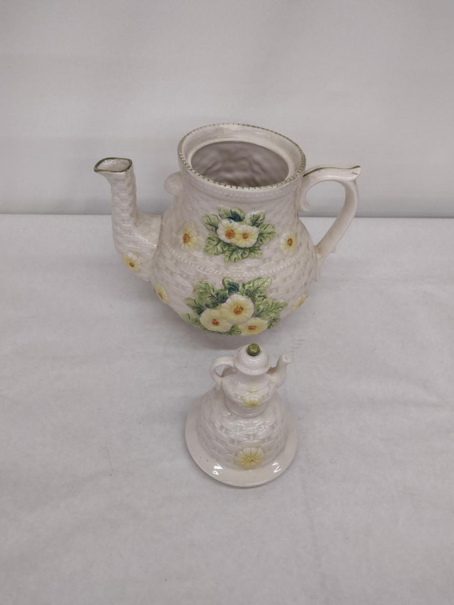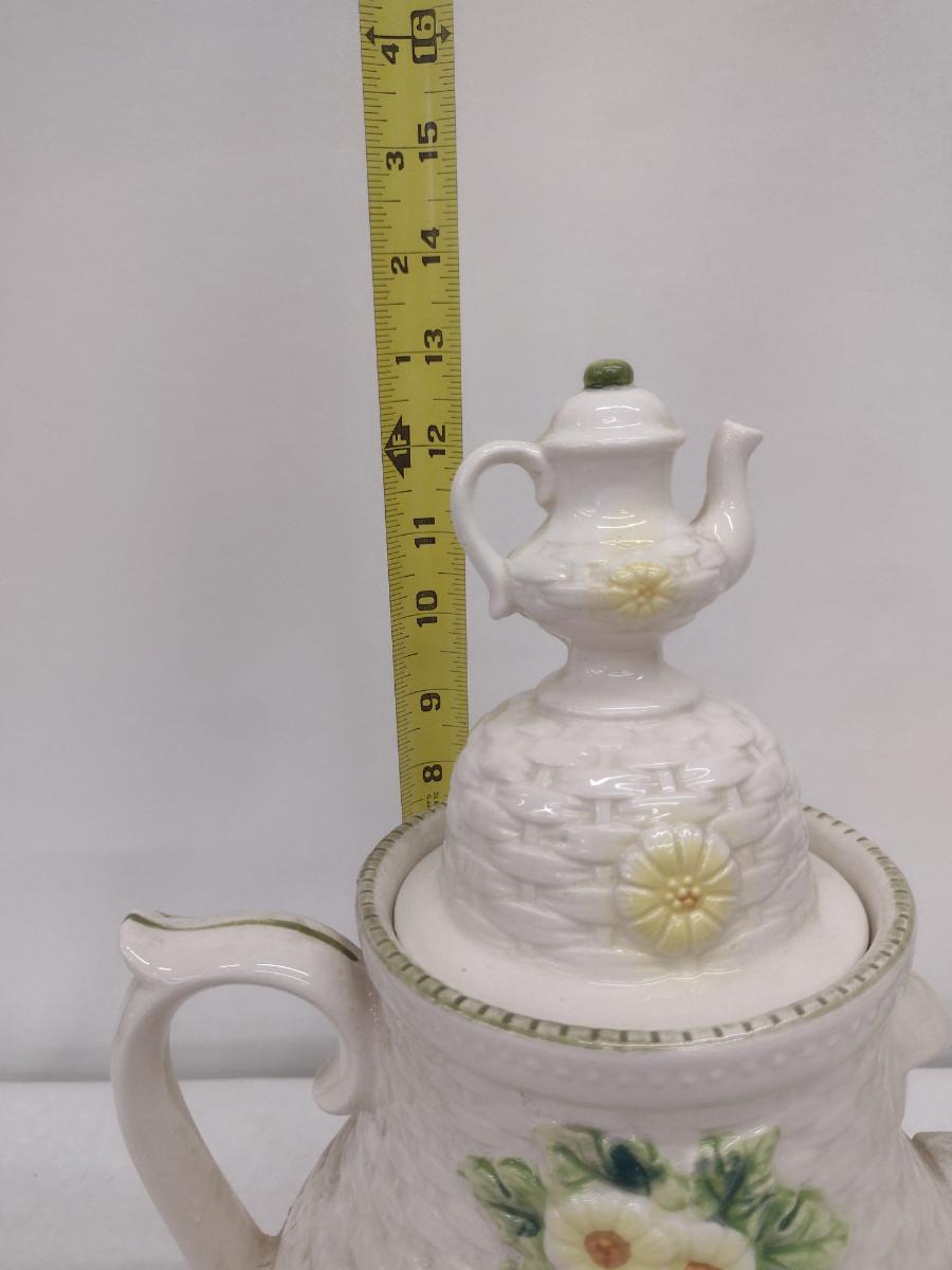Large, Painted Japanese Ceramic Tea Pot- Approx 13" Tall. Please see all pictures- near the handle there appears to be a flaw with the seam from the mold. Could be a crack, but not evident.
