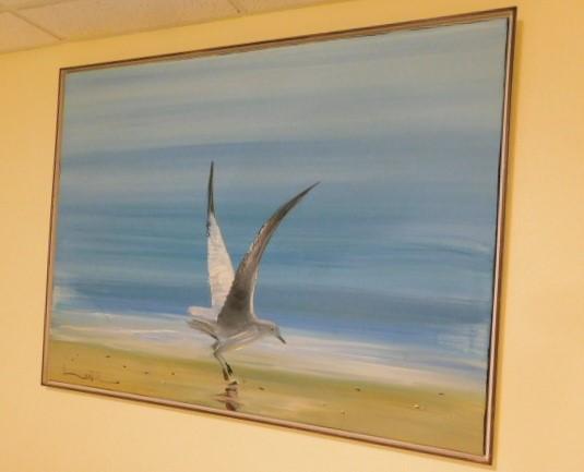 Large Painting of Sea Gall on Beach Framed 49"x37"