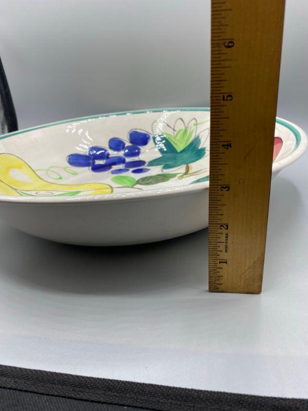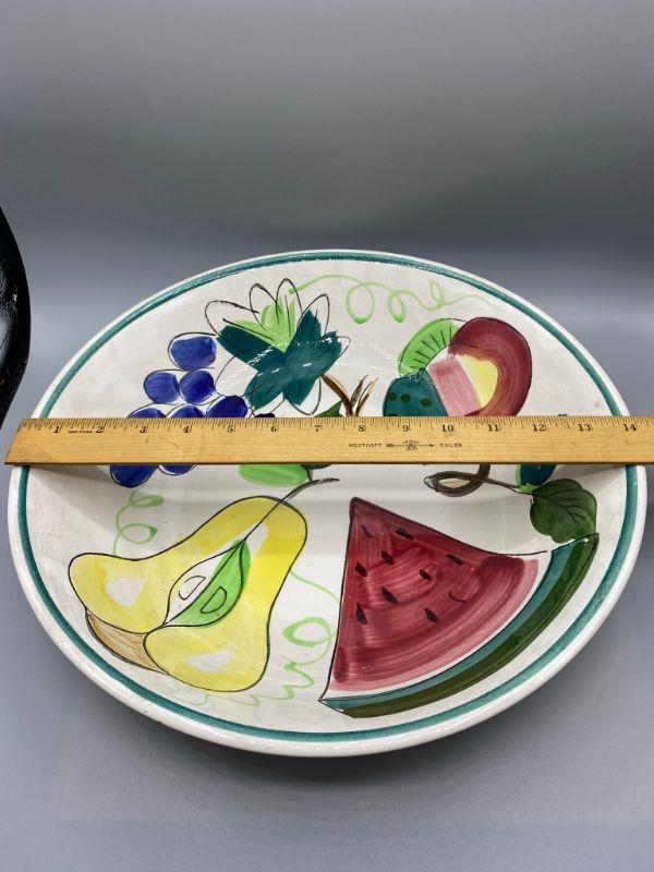 Large serving bowl, great for pasta, salad or as a fruit bowl. Features painted fruit design. Made in Japan. There is crazing through out.