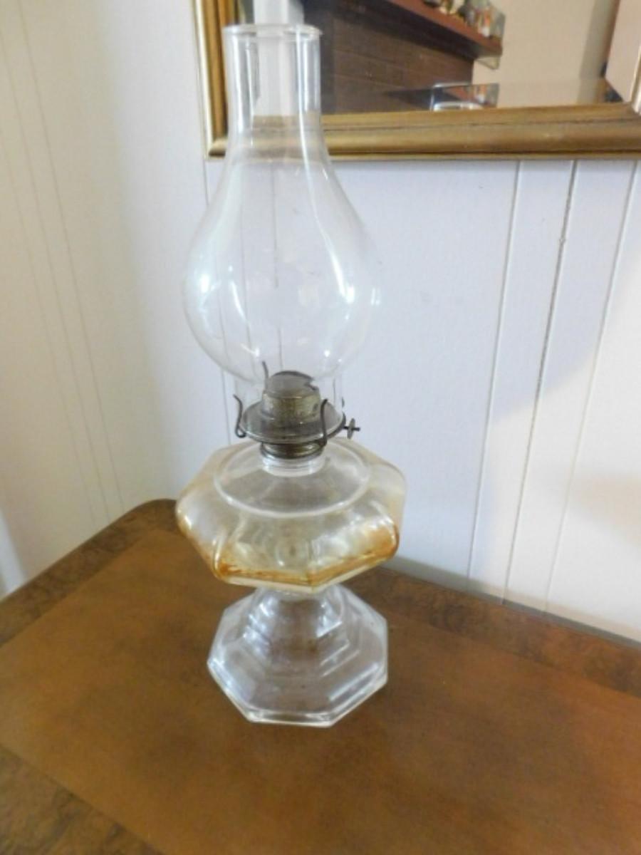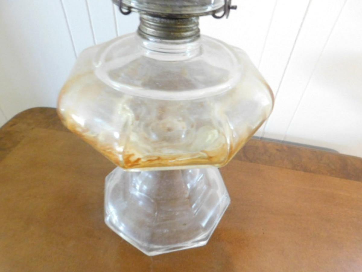 Large Oil Lamp with Shade. Will need to be cleaned. Has residual oil in glass