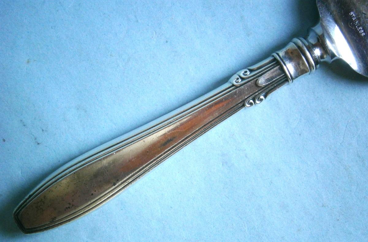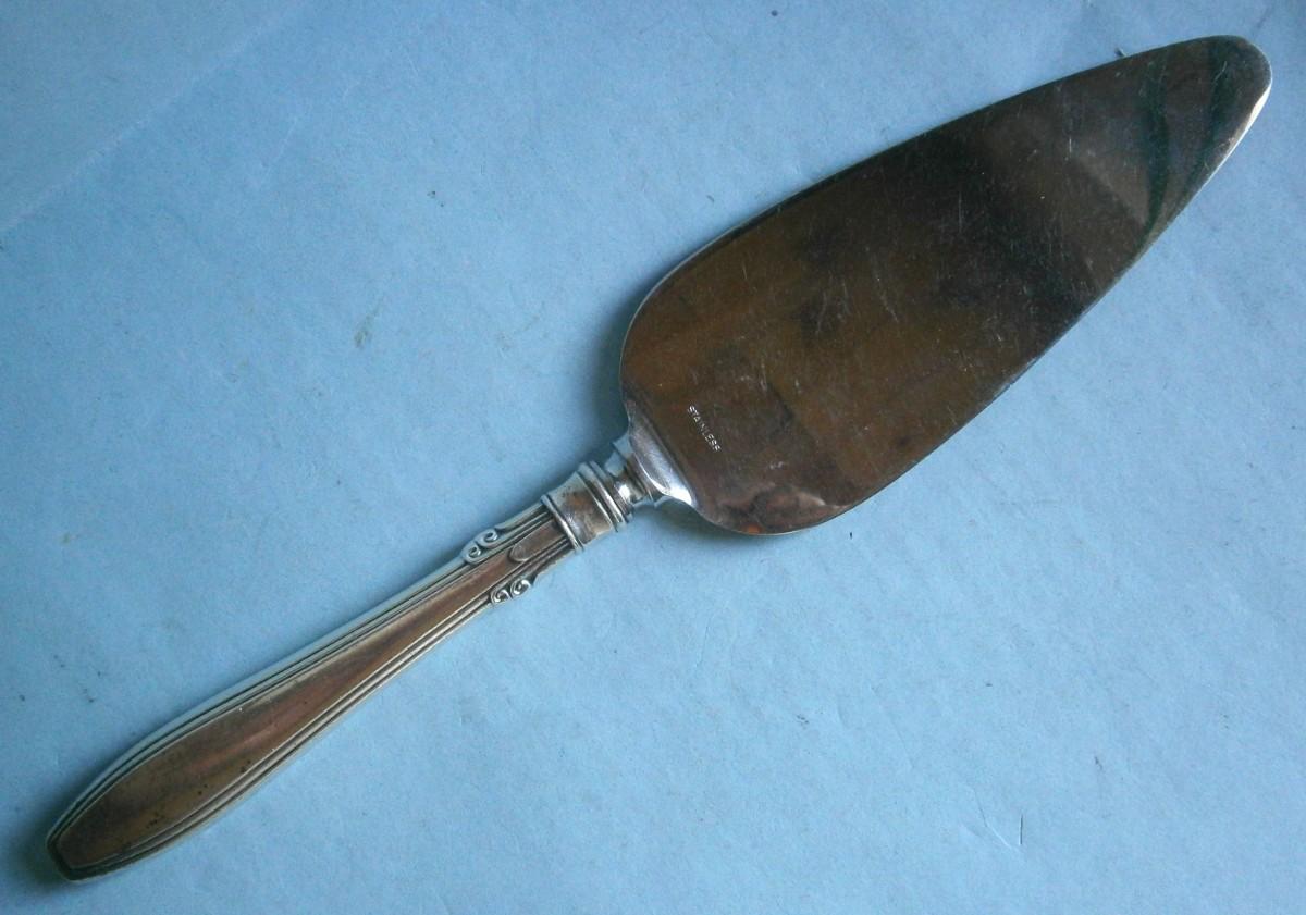 Large Pie or Cake Server Silver Handle and Stainless Silver Blade, 10 1/2 in. long, handle not marked - believe it is silver.