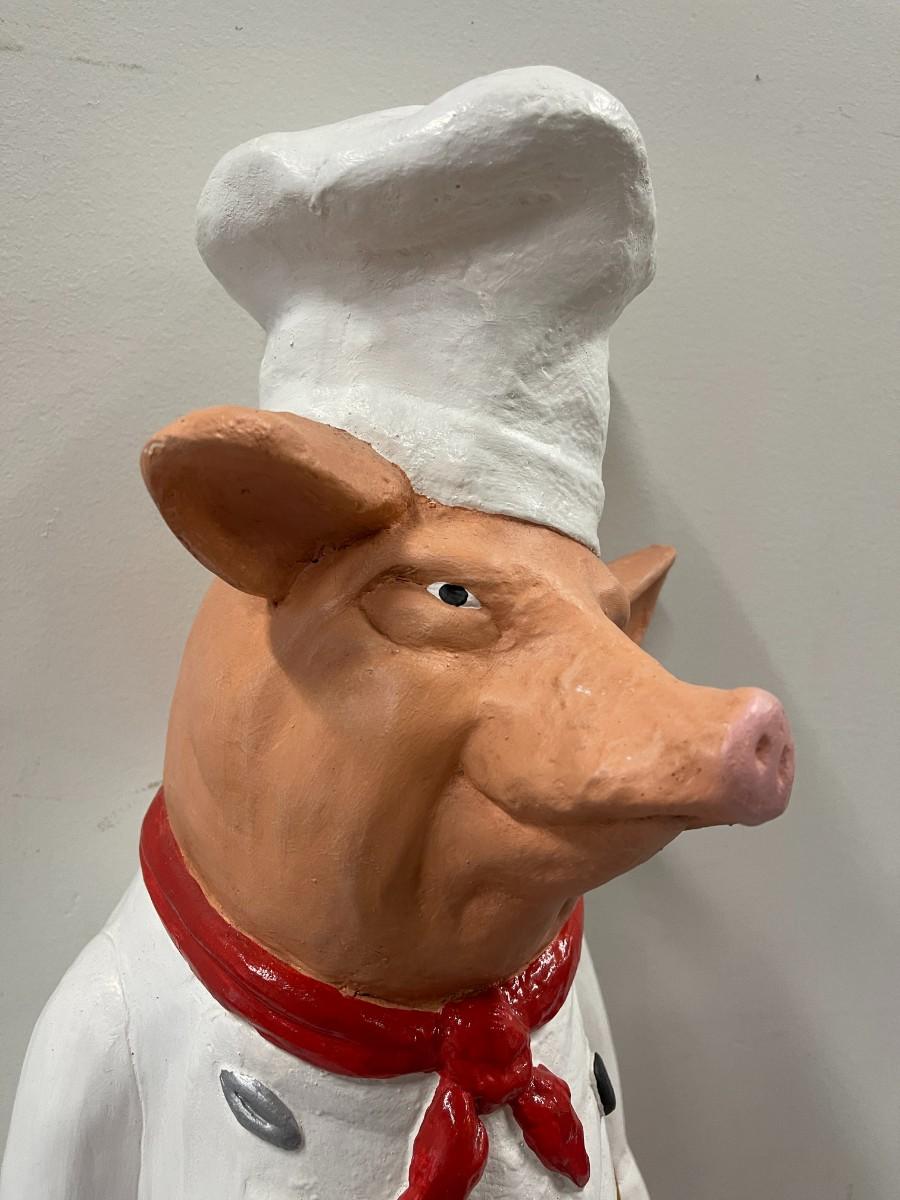 Large pig chef figurine. Very good condition with some minor chips here and there, mostly to the maracas. 25" tall