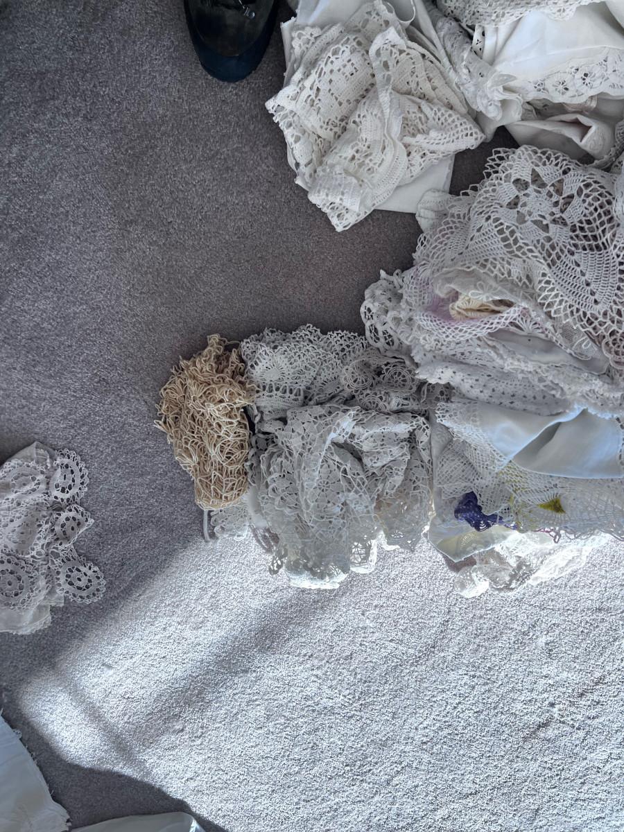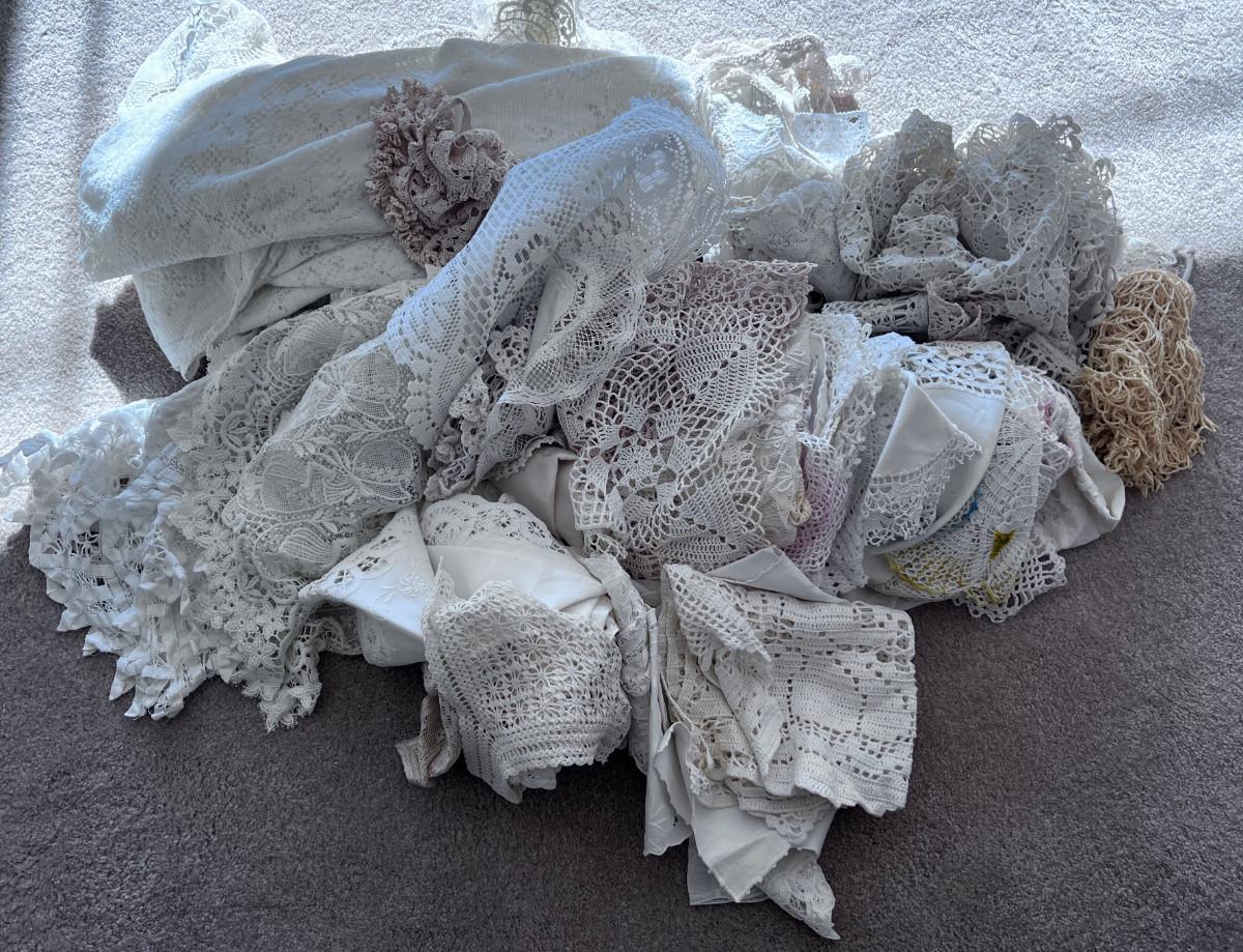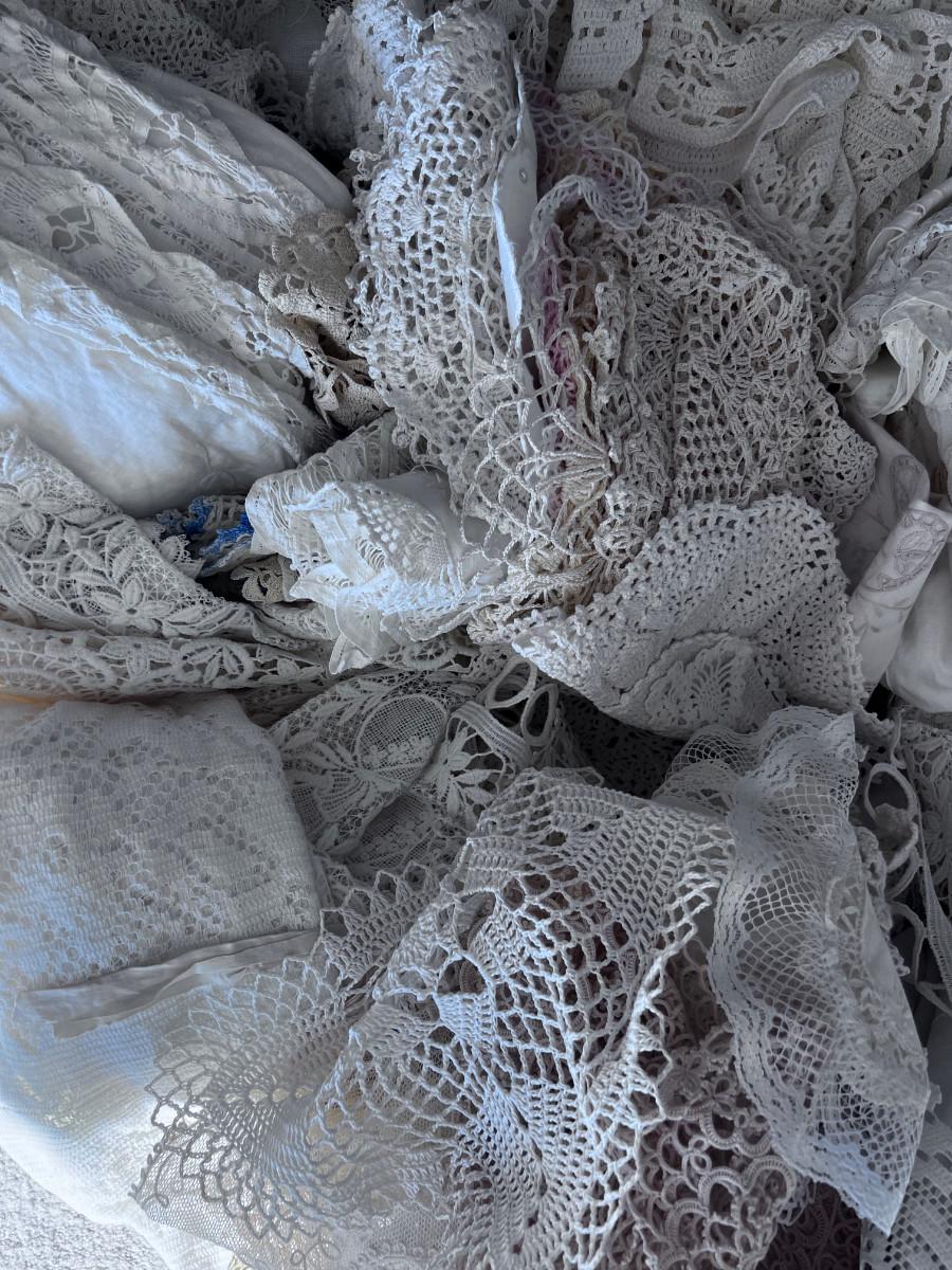 Large Pile of linens, Dollies, tablecloths, Cut-out and Battenberg
