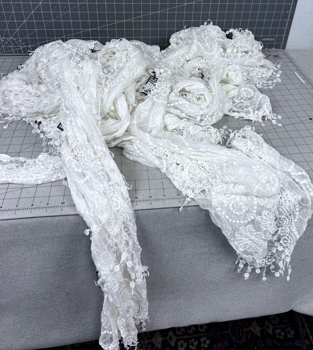 Large Pile of Matching NEW Stevie Nicks Style Lace Scarfs