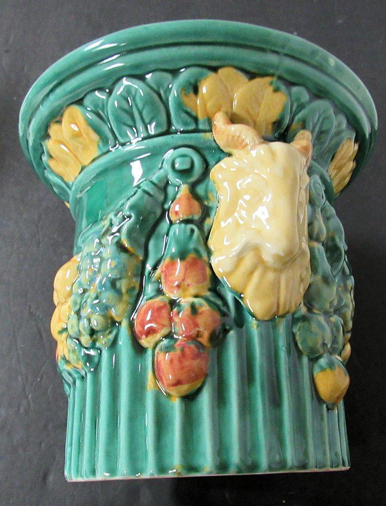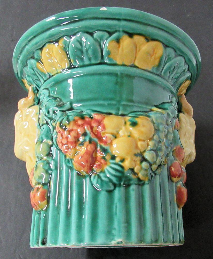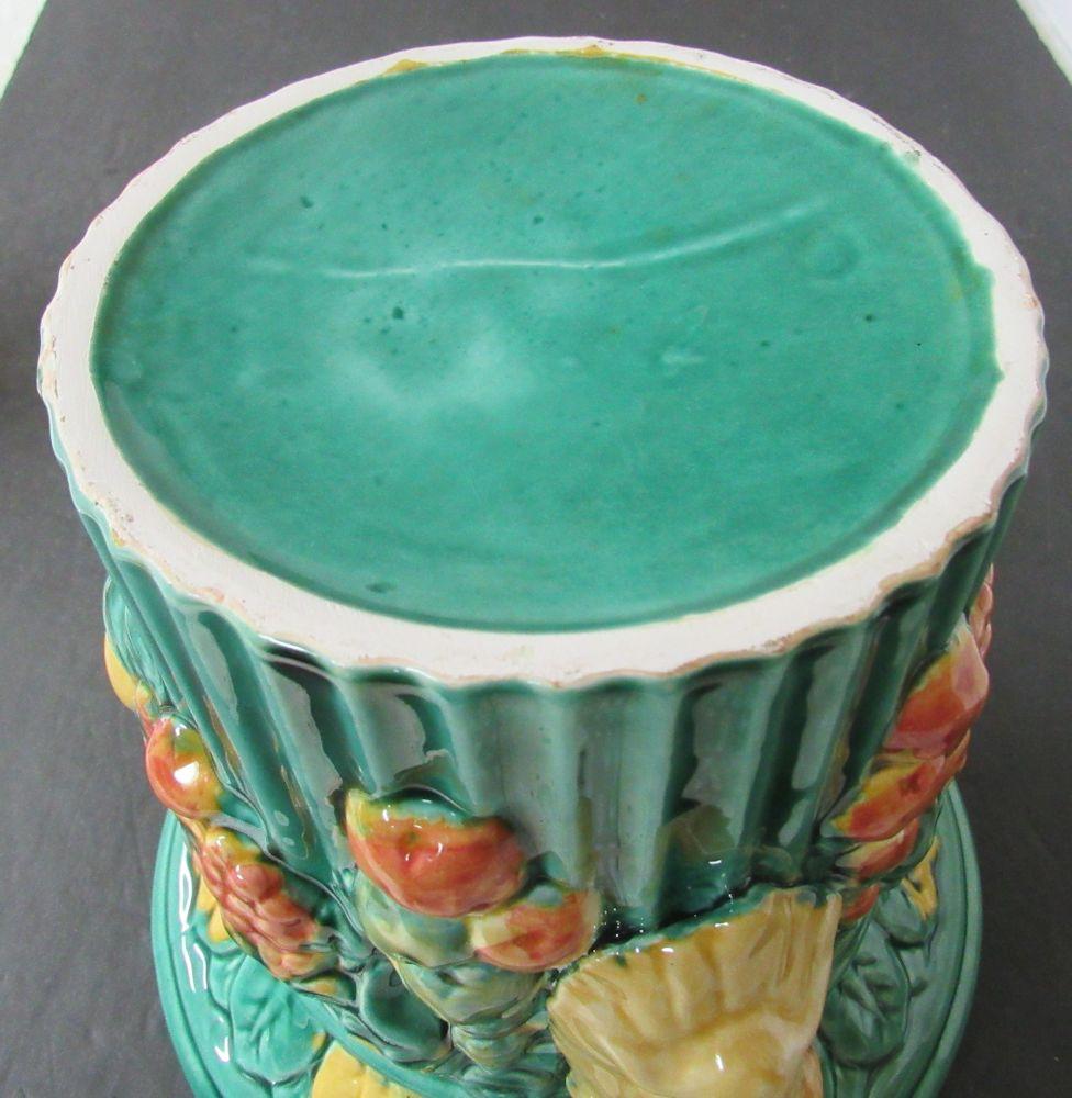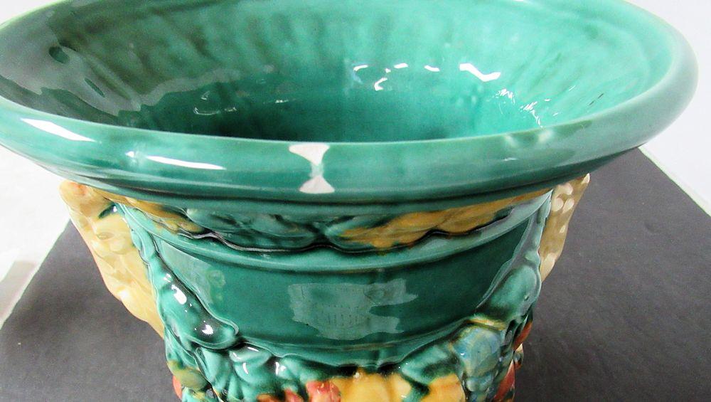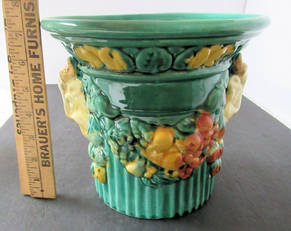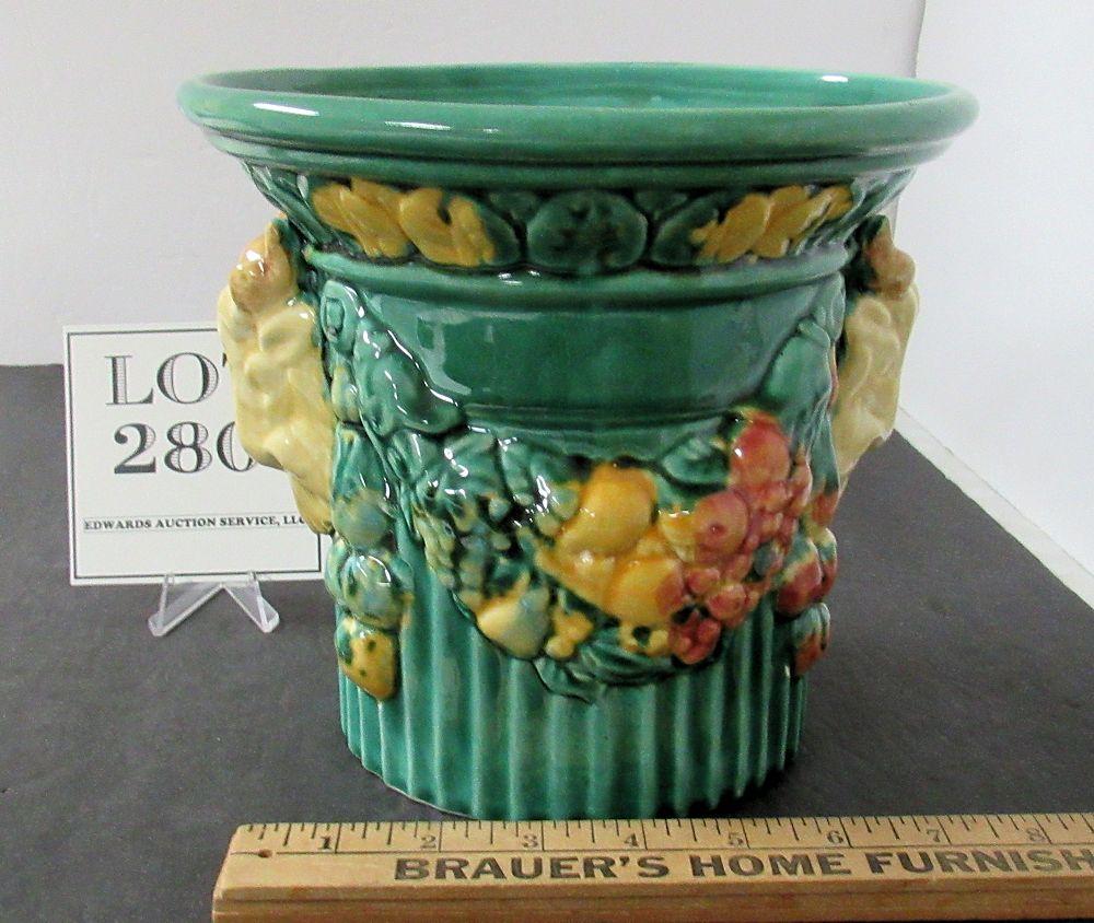 There are 2 glaze chips on the top rim as seen in photos, otherwise good. Too big to ship.