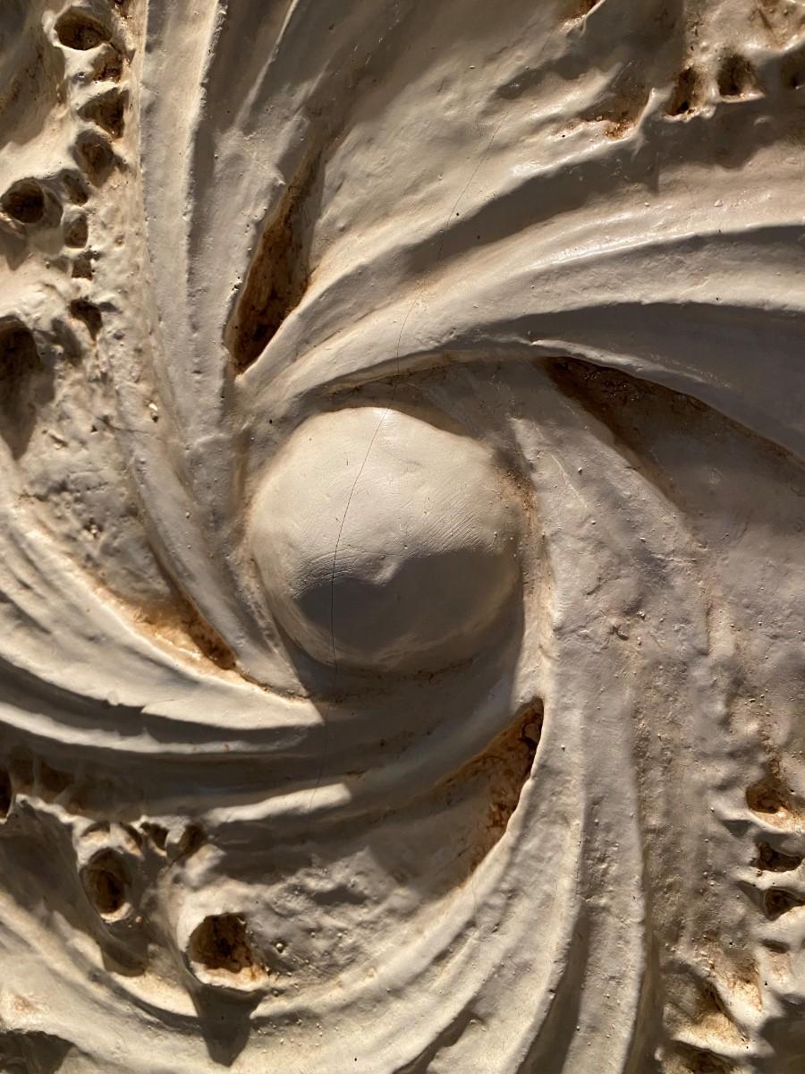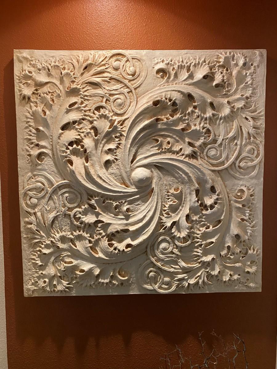 Large Plaster European or Italian Style White Square Wall Decor. In excellent condition. Beautiful leaf spiral pattern.