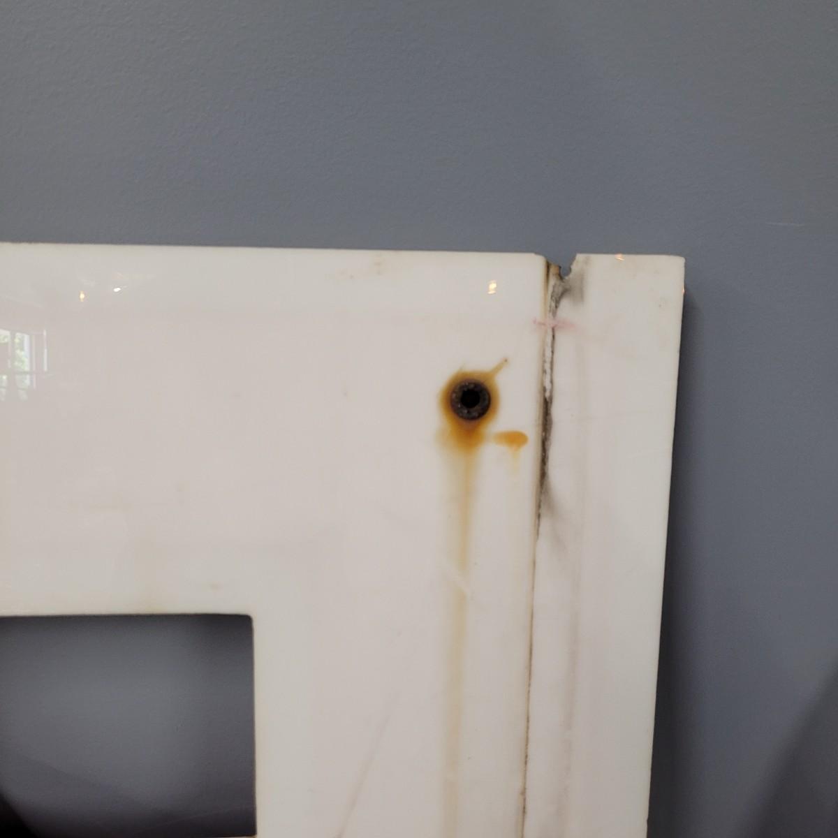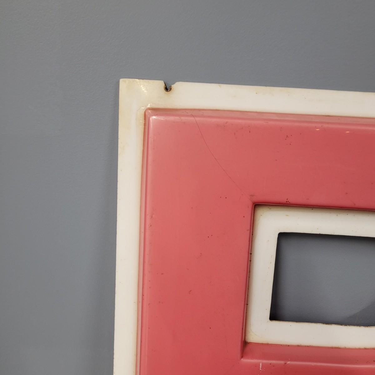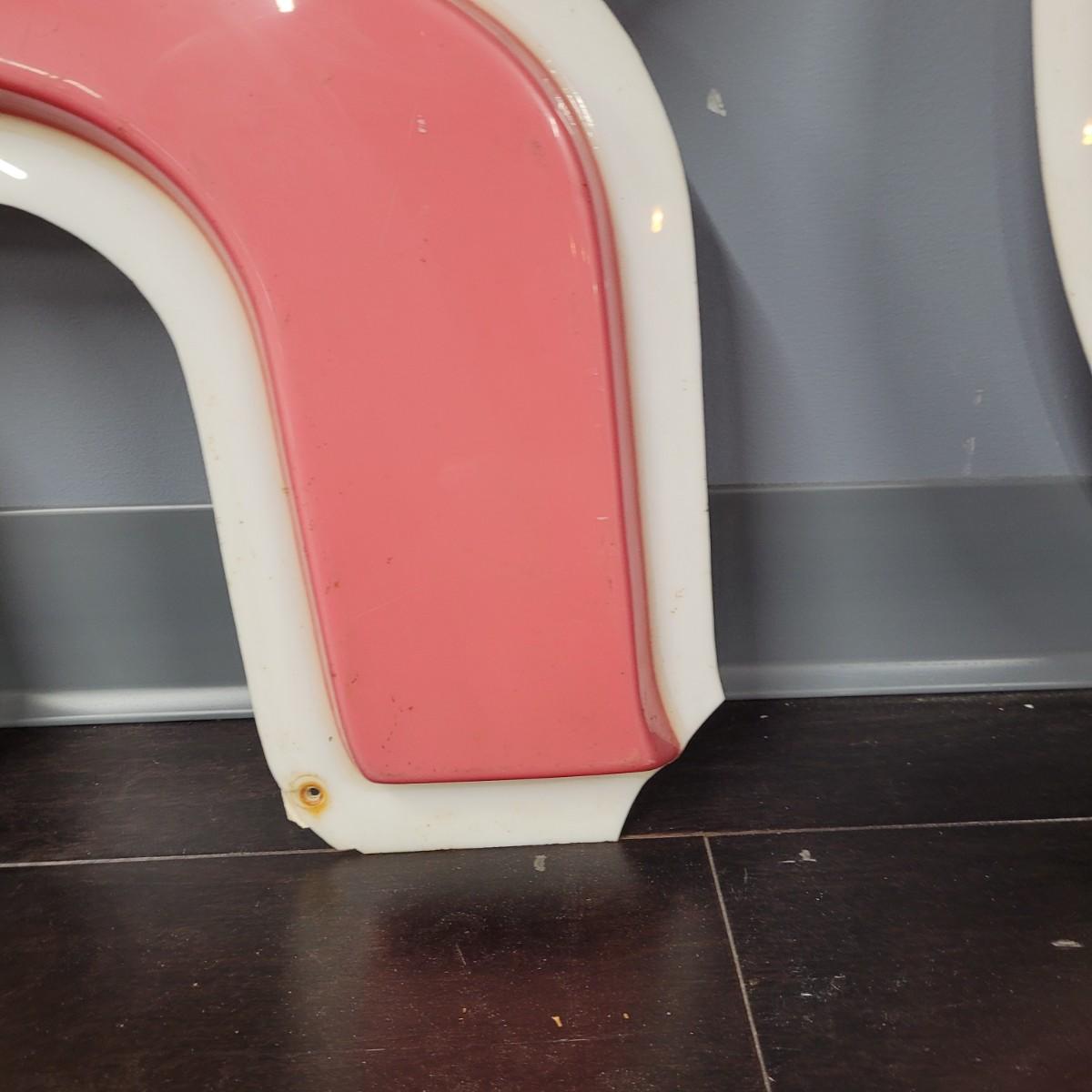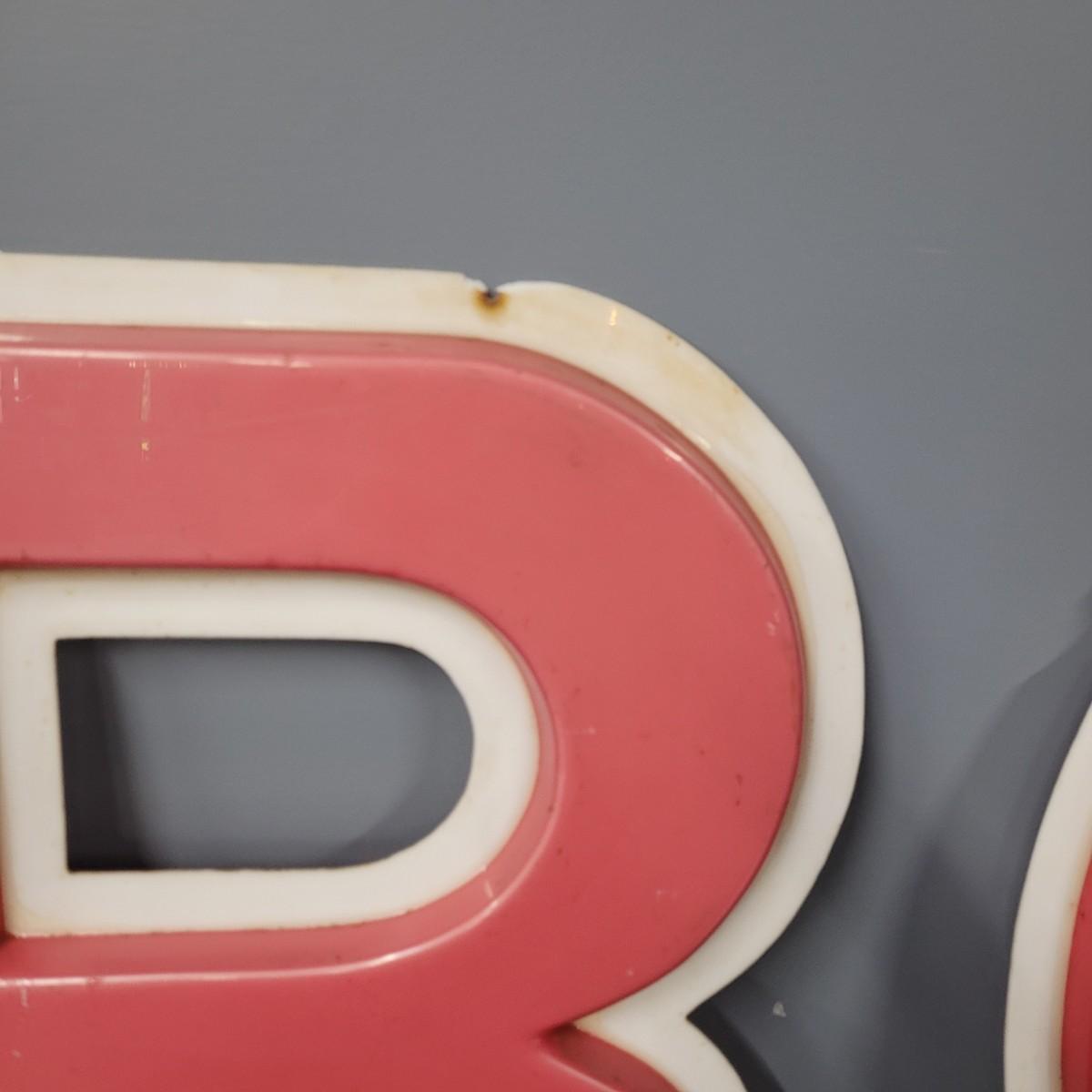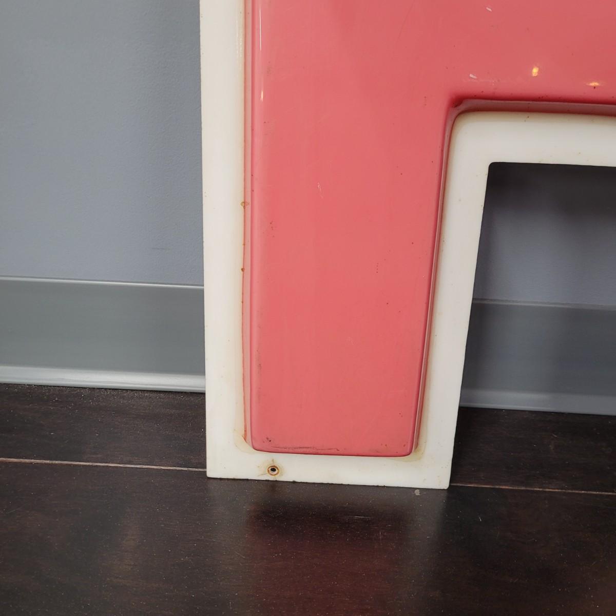 Large plastic hanging "R" and "G" letters. Significant chipping around edges and large crack on upper left part of "R" (see pictures). "R" measures approximately 21.5" x25.6" and "G" measures approximately 24" x27.5". Shipping available.