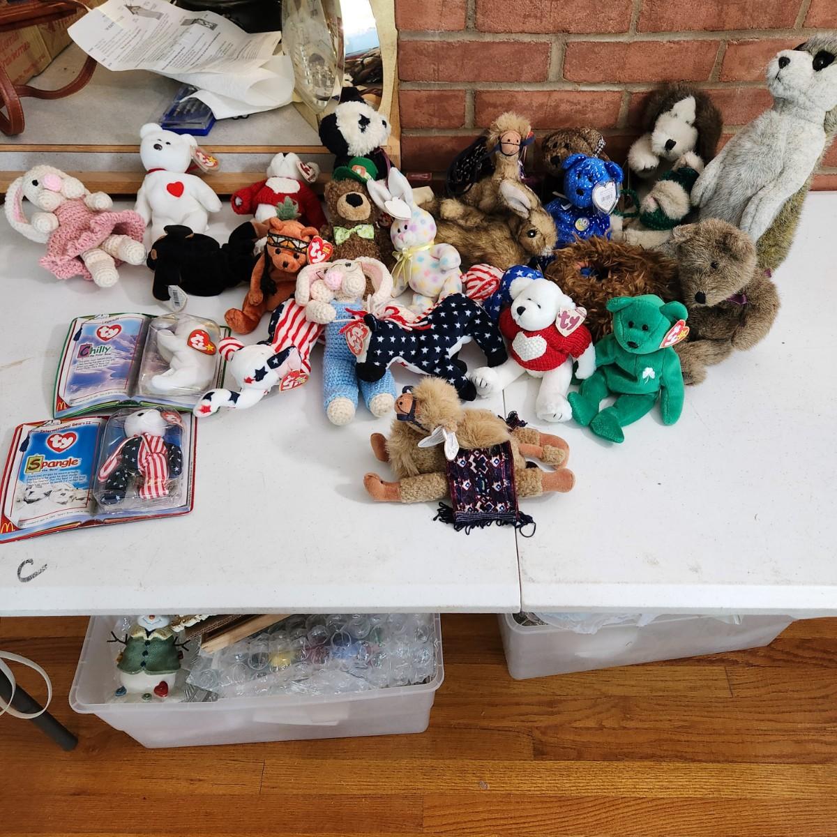 Large Plush Animal Lot , Ty Beanie Babies, J.B. Bean ,