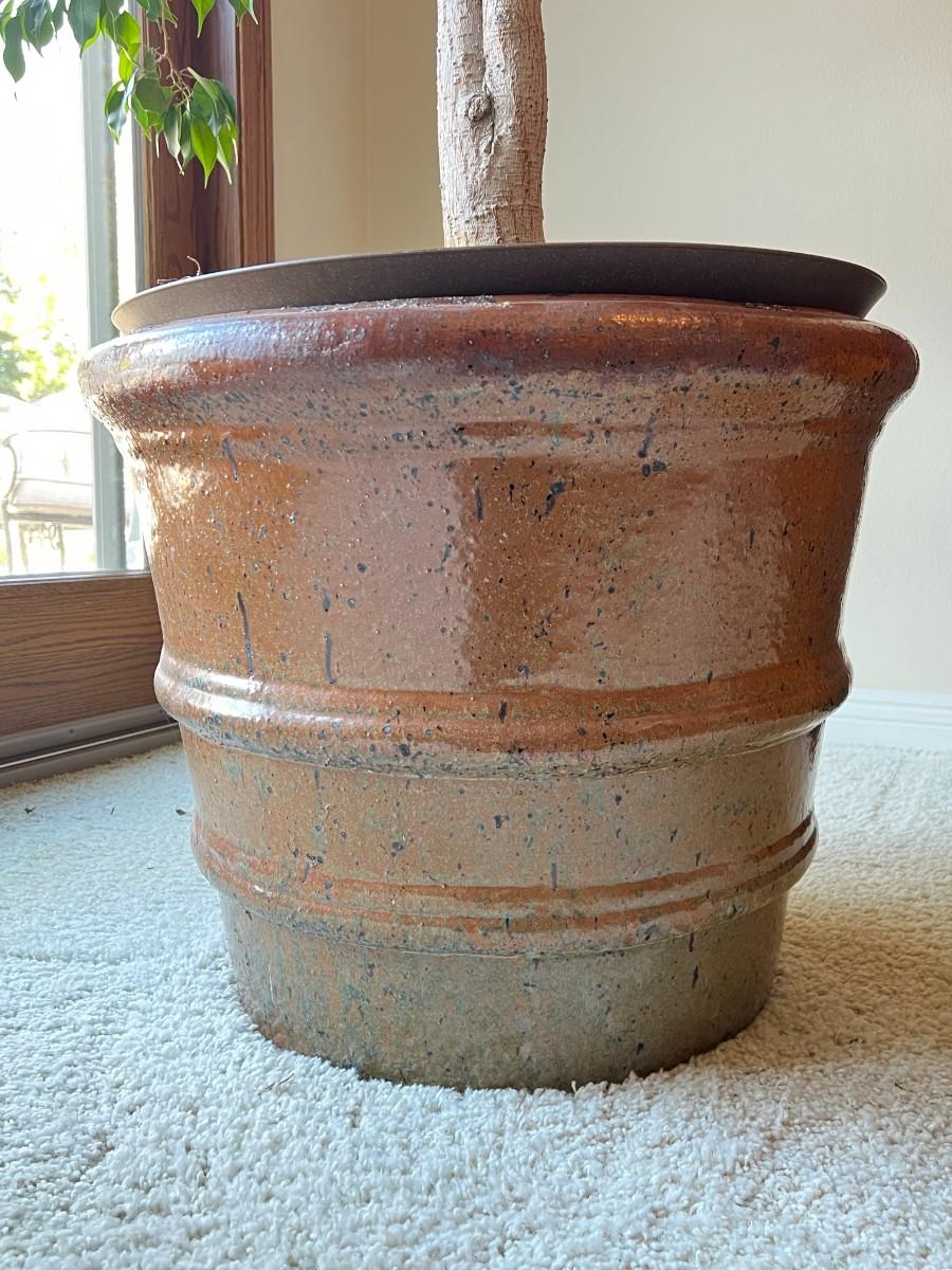 There is no significant damage to the planter or the plant and is in overall good displayable condition. Check pictures for more details and for sizing.