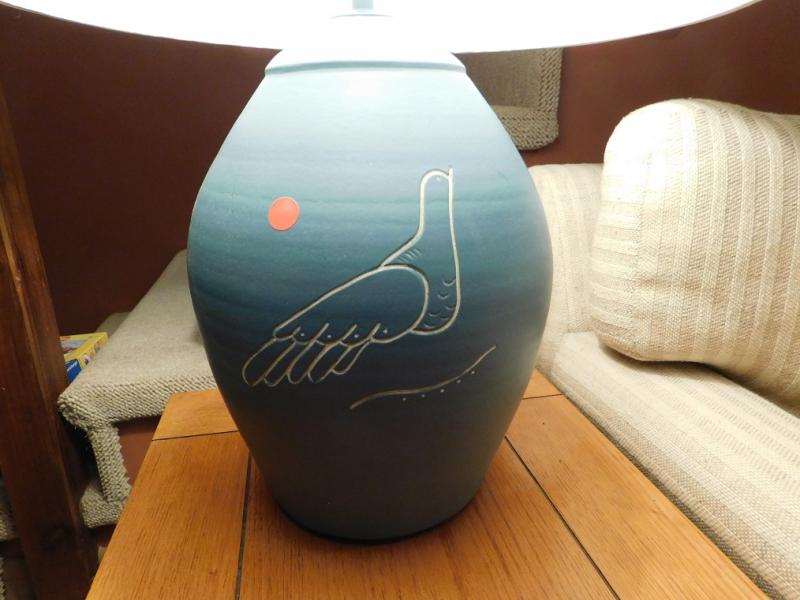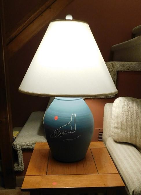 Large Pottery Base Lamp with Dove Imprint