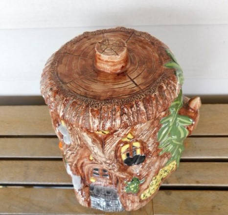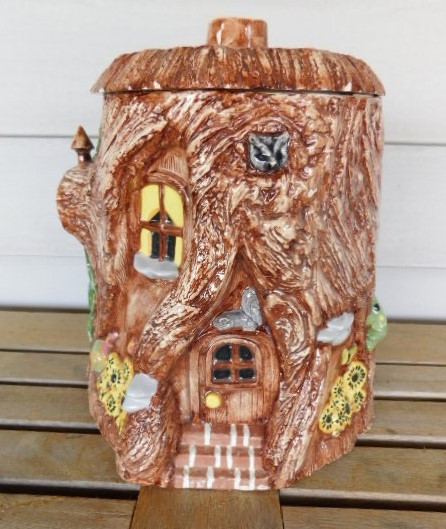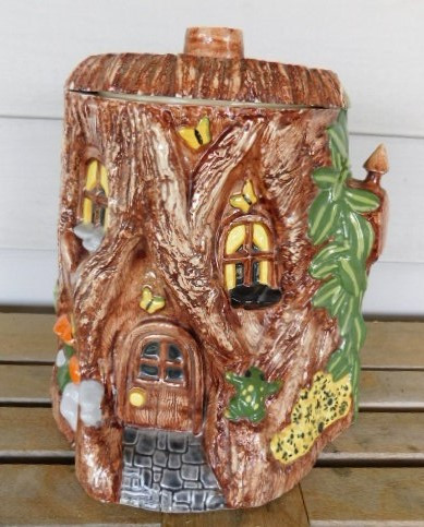 Large Pottery Ceramic Tree House Cookie Jar 9"