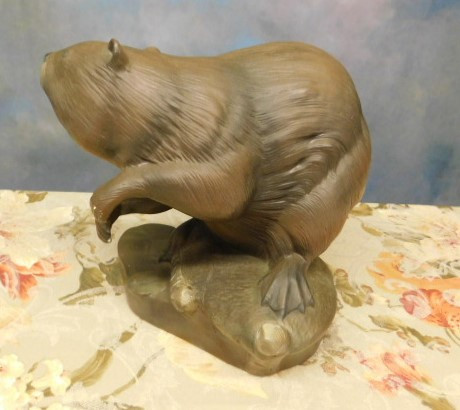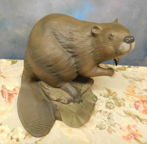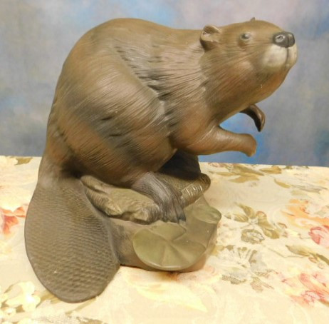 Large Pottery Handpainted  Beaver by Local Artist 10"x9"