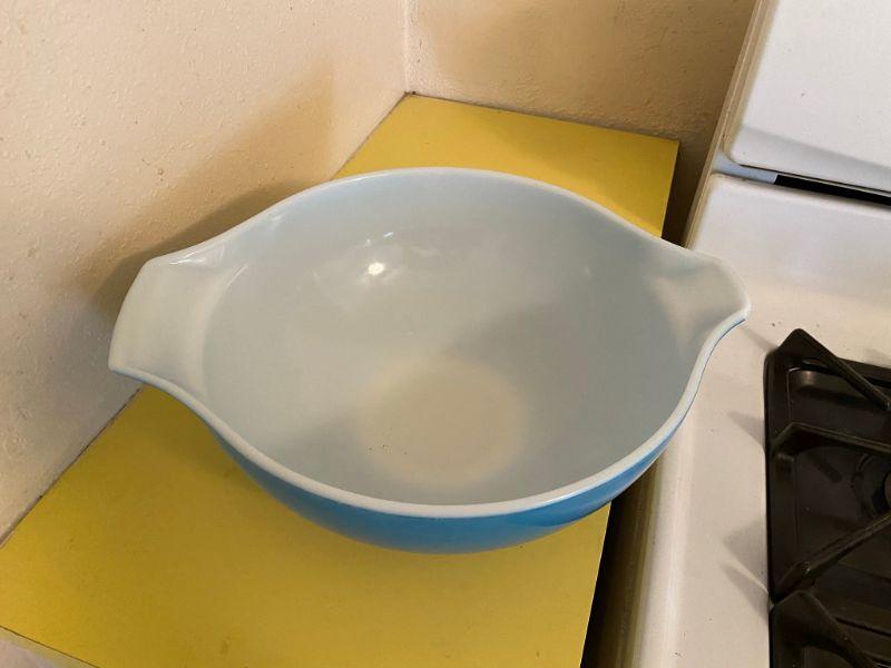 Large Primary Blue Pyrex Mixing Blue *Damaged* YD#019-0104