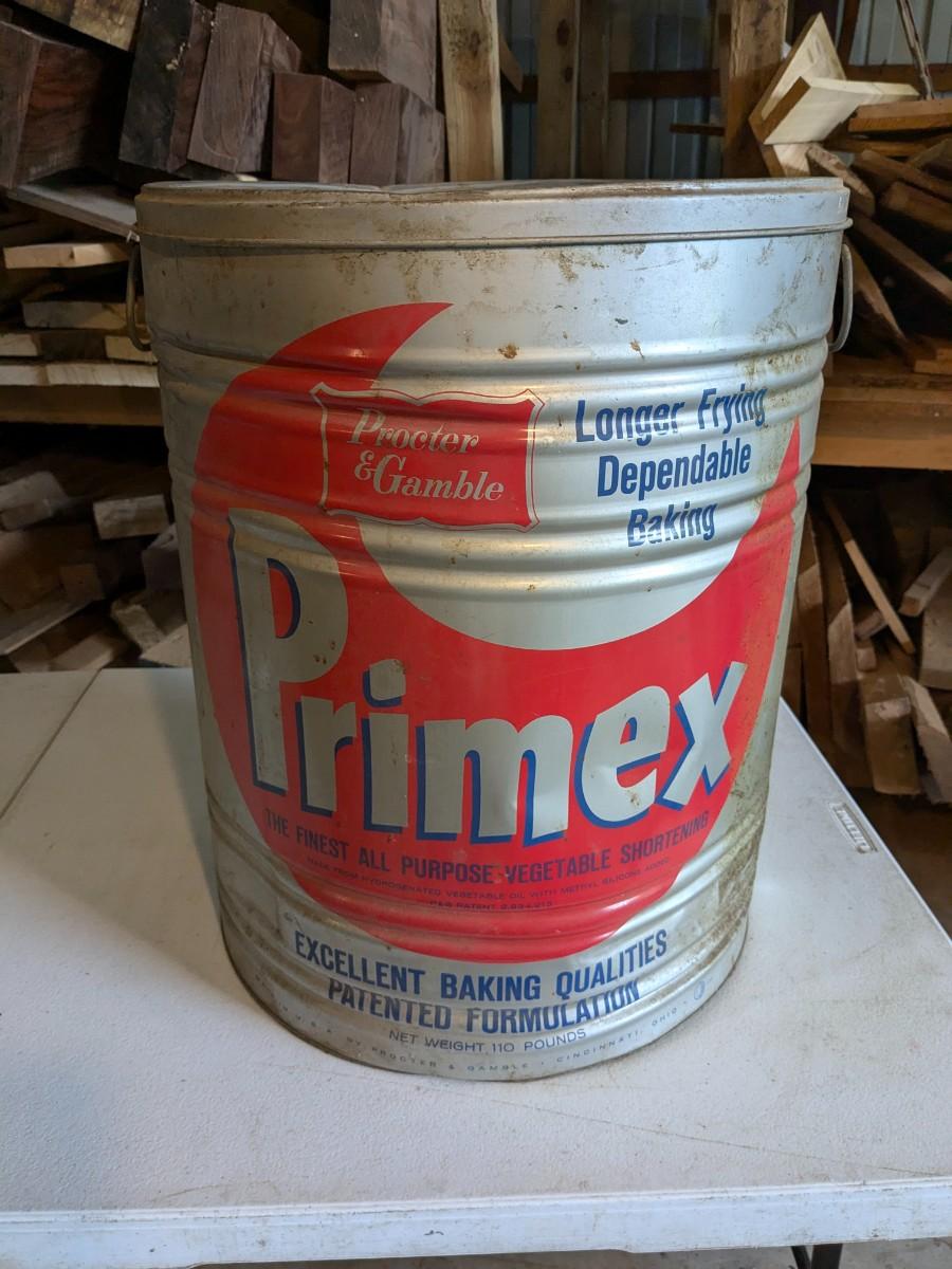 Large Primex Steel Tin Procter and Gamble Frying Shortening Empty Can