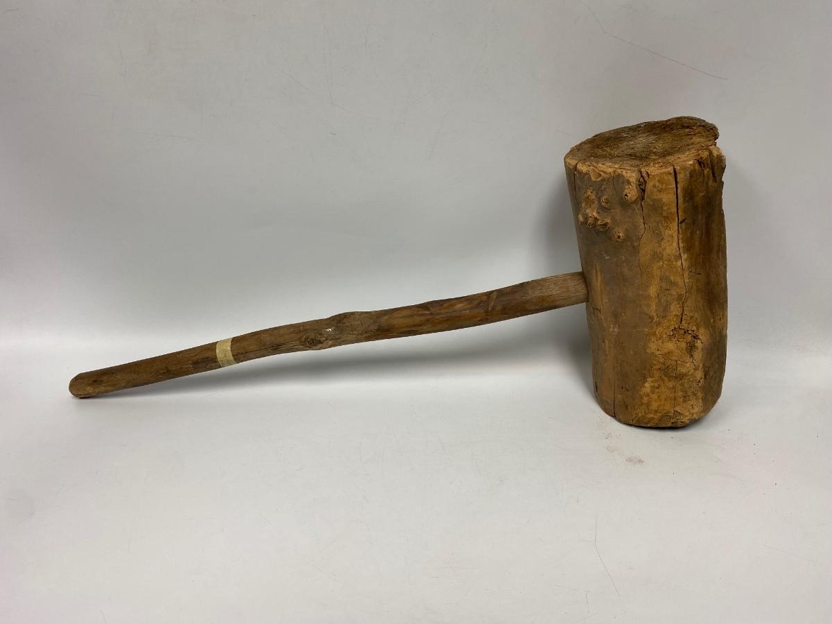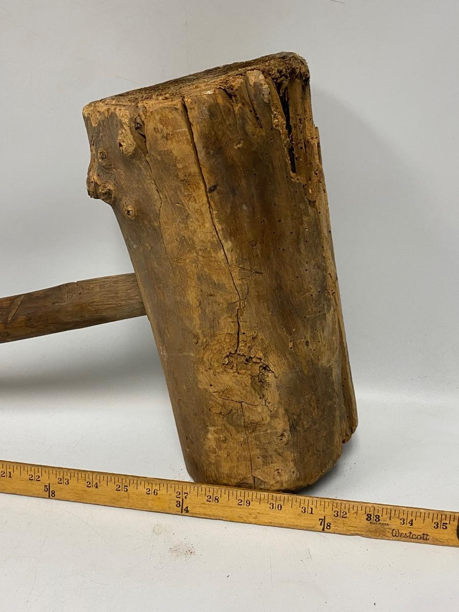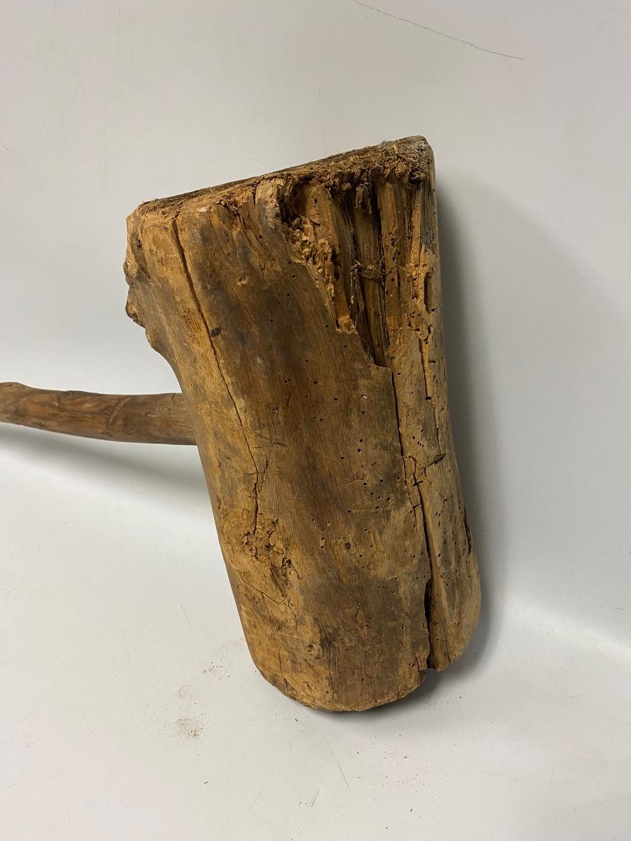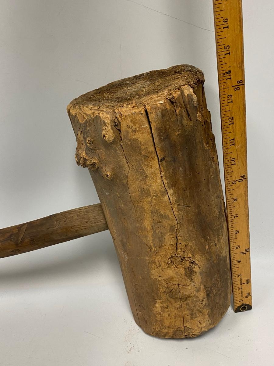 Large Primitive Crude Hand Made Wood Stump Antique Mallet