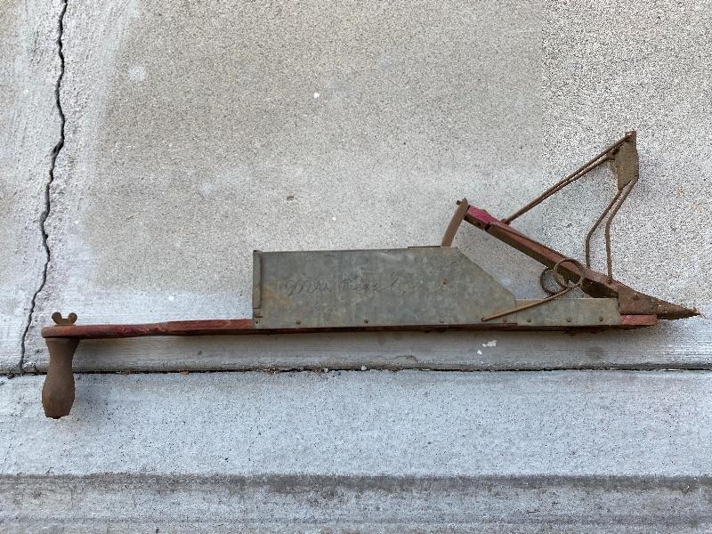 Large primitive wood and metal corn seed planter. Great for display. Did not find any maker mark. Over 24" size