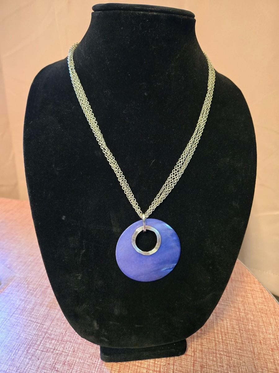 Large Purple Pendant Necklace on a silver chain