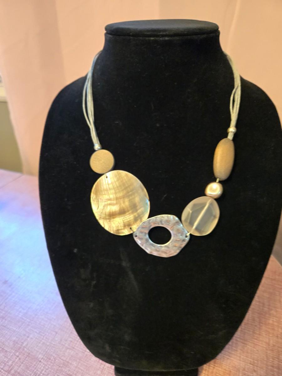 Wood/shell/seaglass look necklace