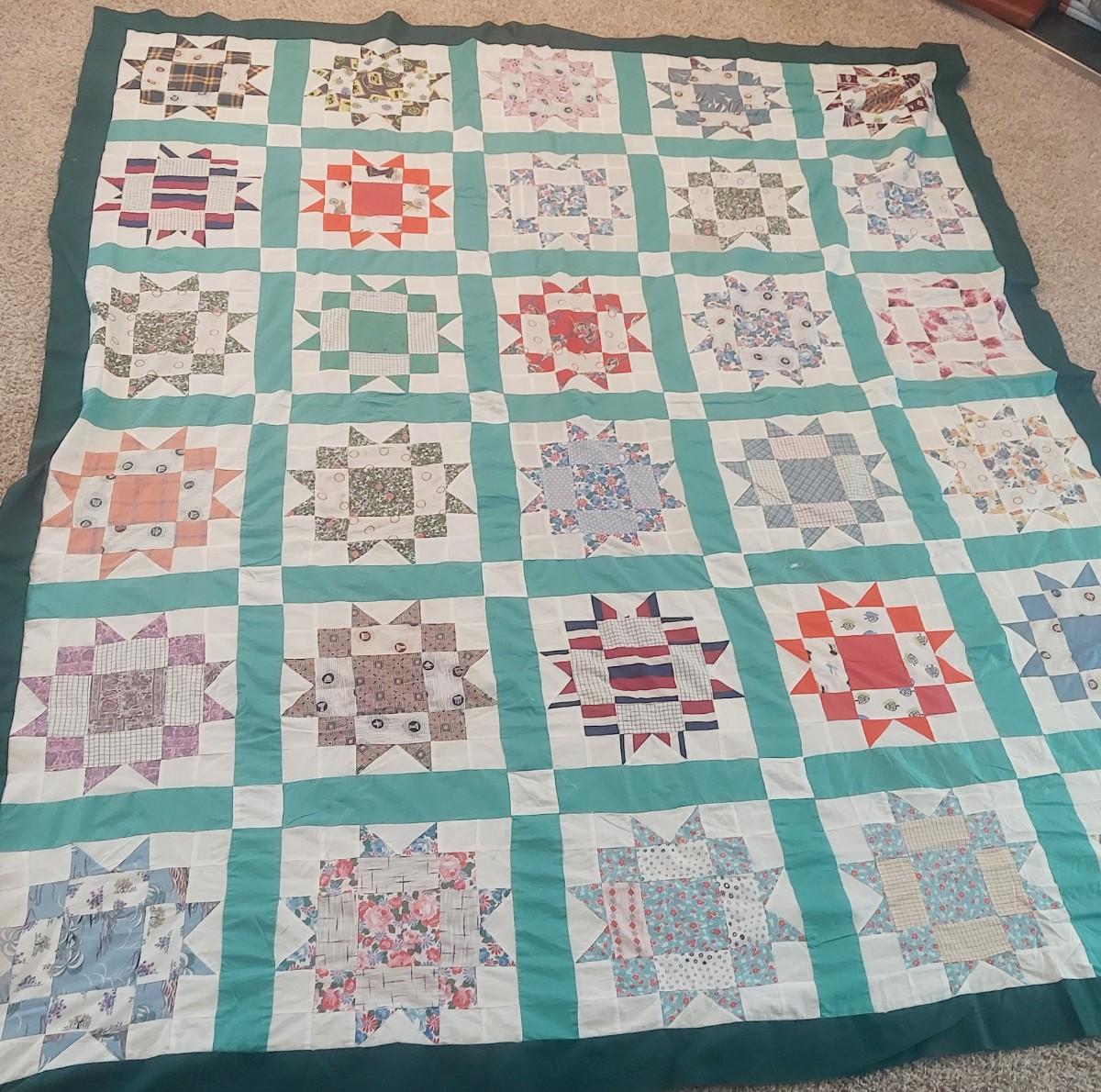 LARGE QUILT TOPPER - UNFINISHED - HAND SEWN