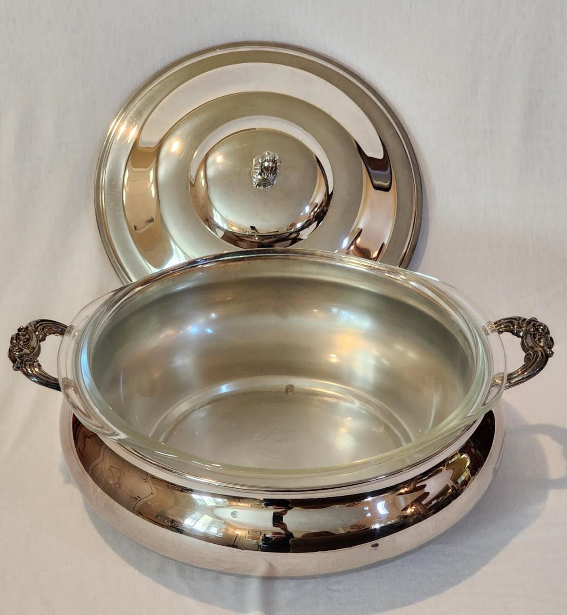 Large Raimond Silverplate 12" Round Chafing Dish with lid and Pyrex insert
