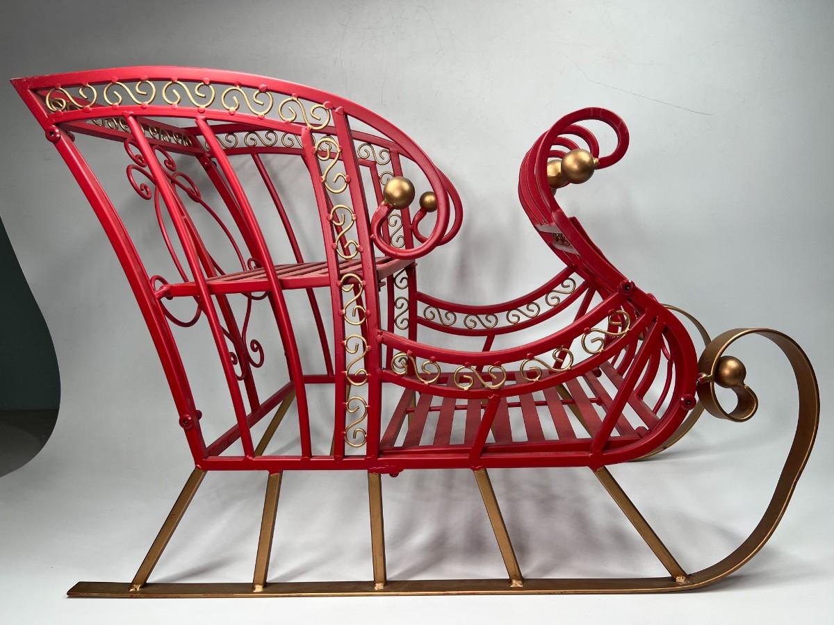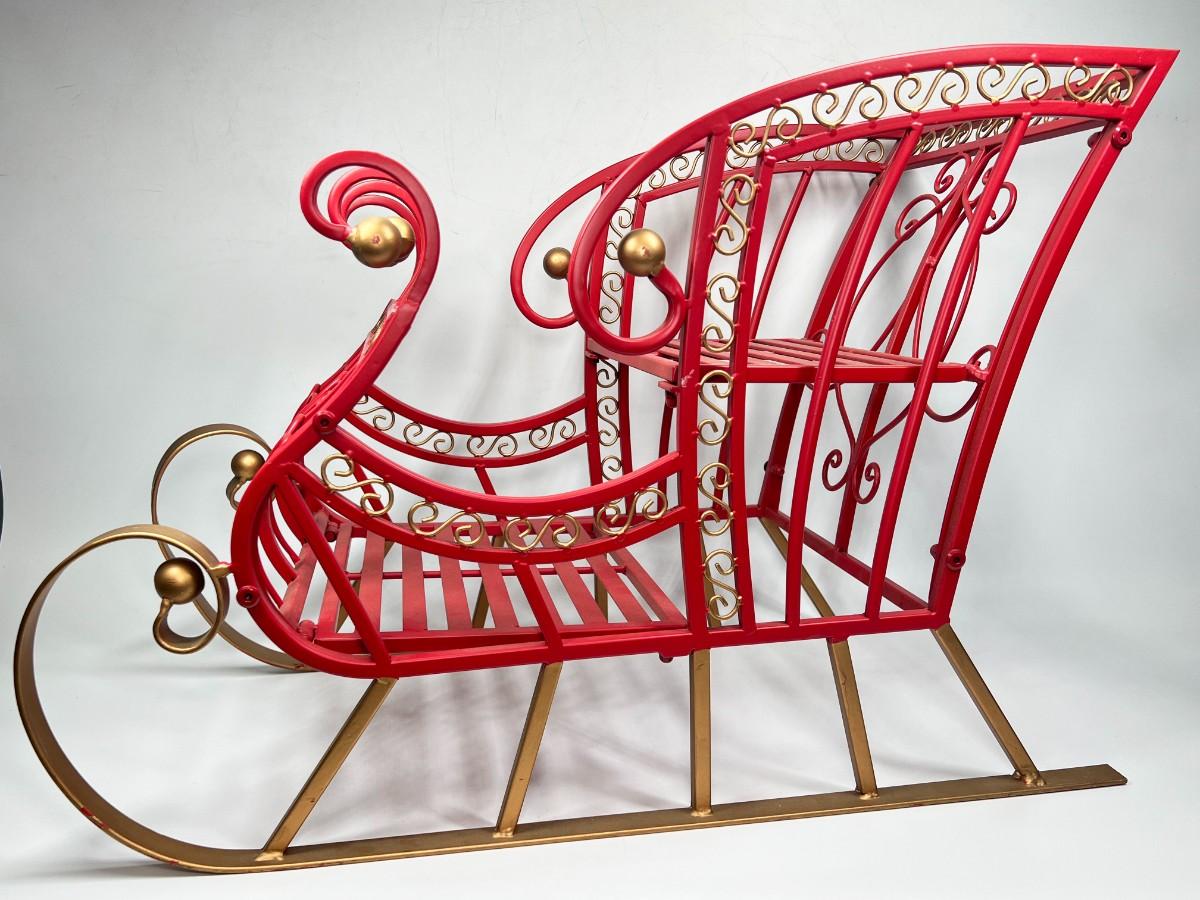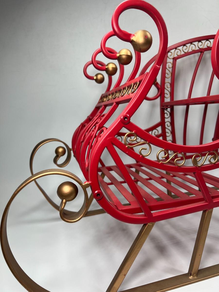 Large Red Metal Holiday Santa Claus Sleigh Indoor & Outdoor Christmas Decor
