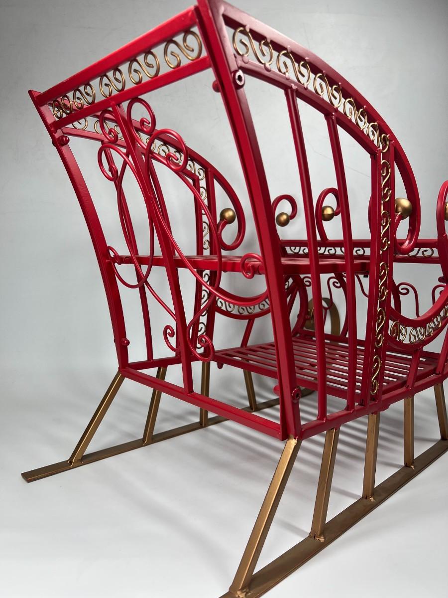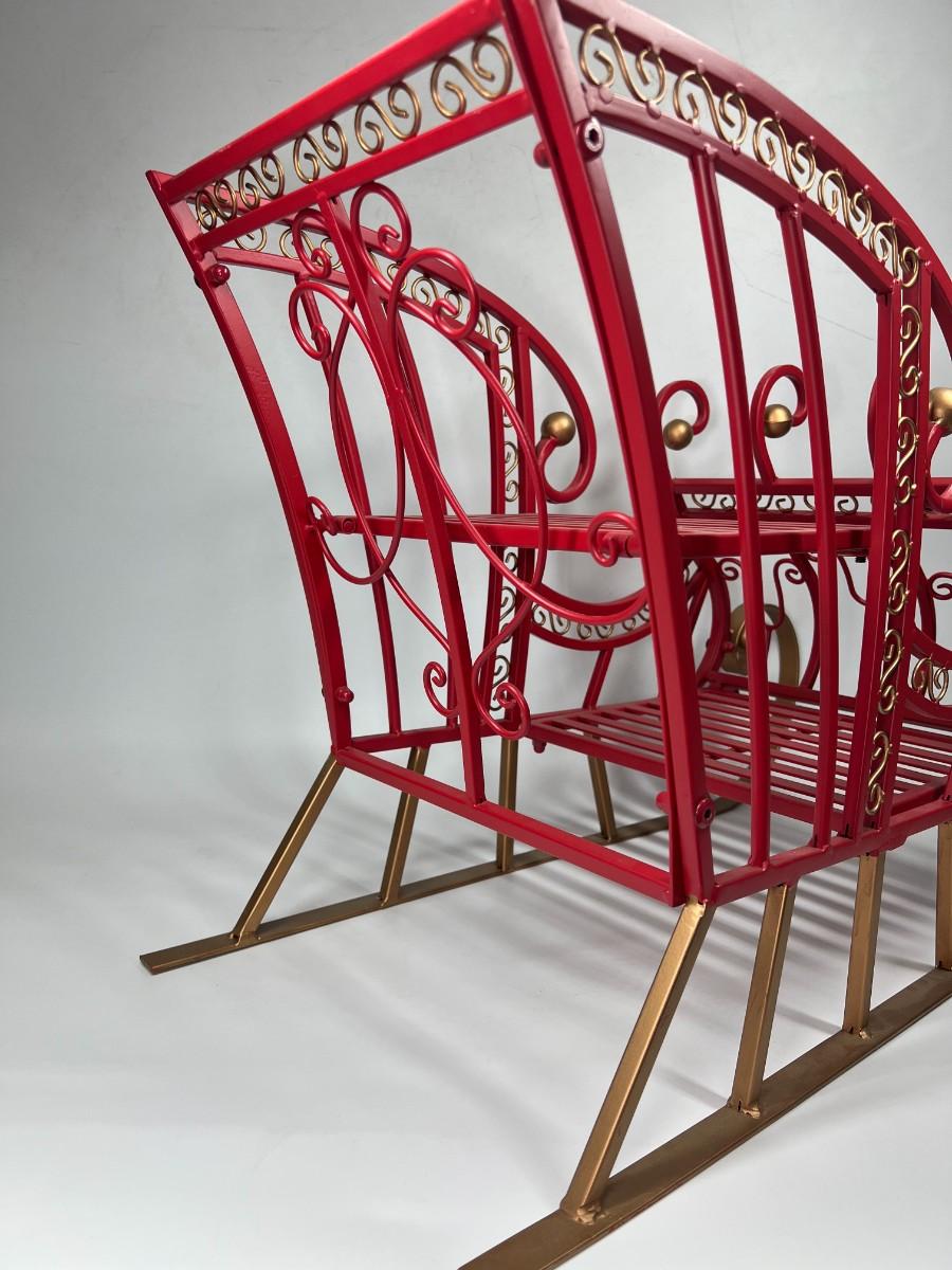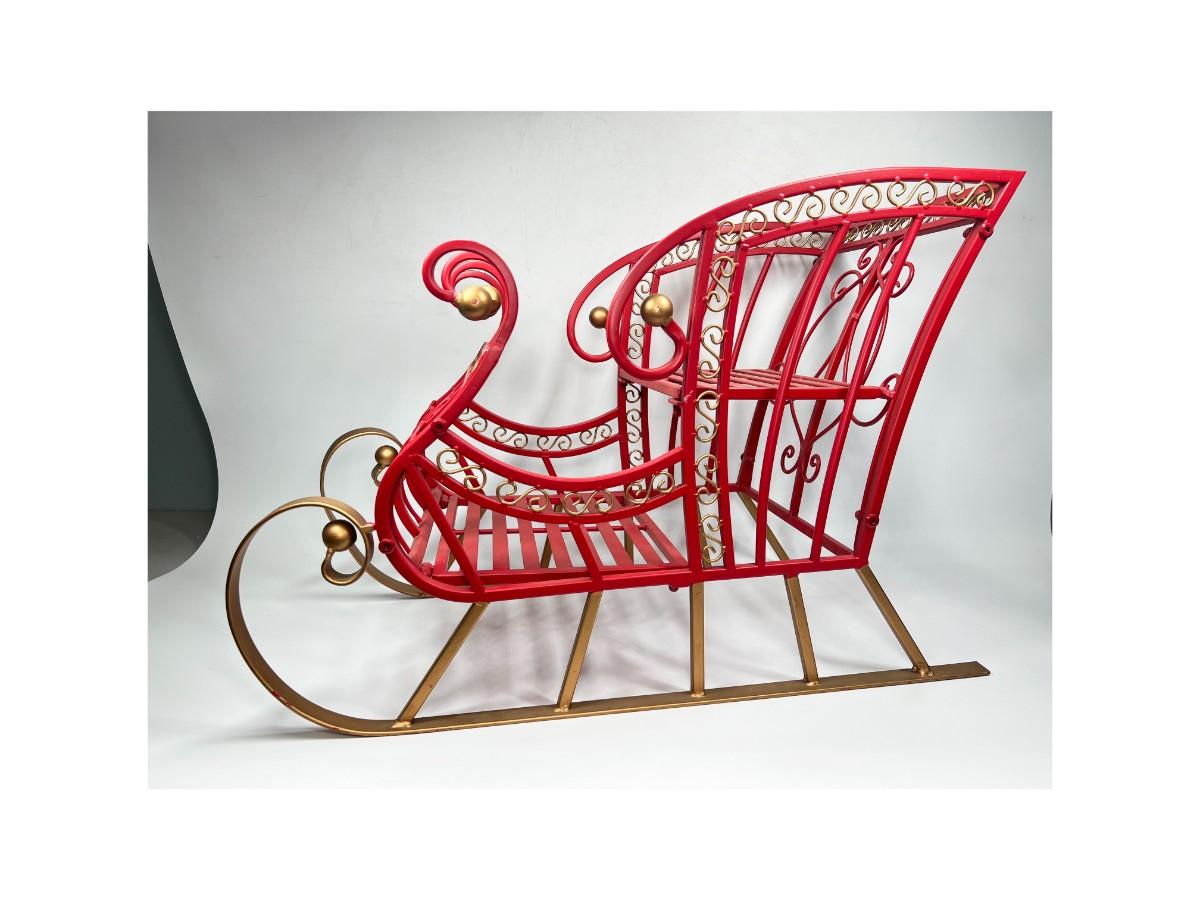 Large Red Metal Holiday Santa Claus Sleigh Indoor & Outdoor Christmas Decor