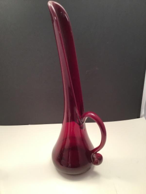 Vintage Large Red Blown Glass mid century modern Pitcher/vase