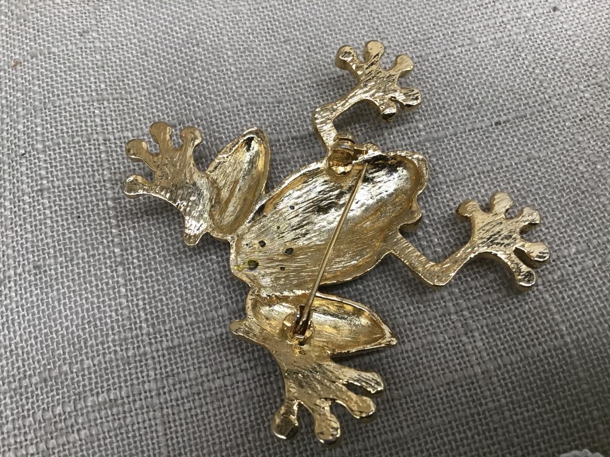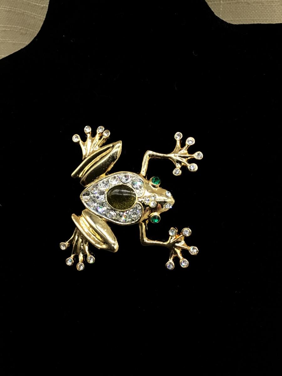 Large Rhinestone Green Frog Pin Brooch Reptile Vintage Style