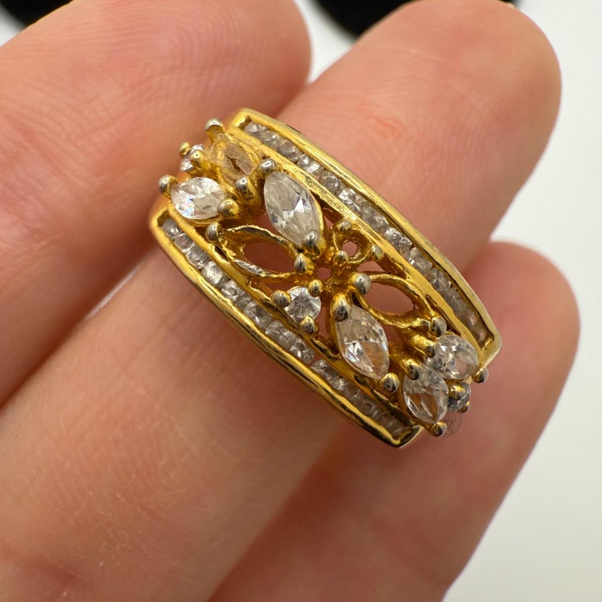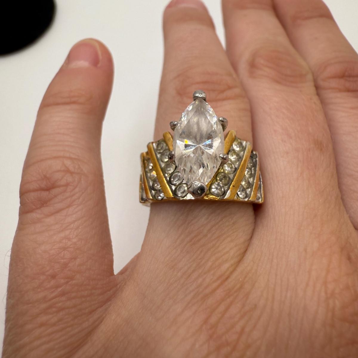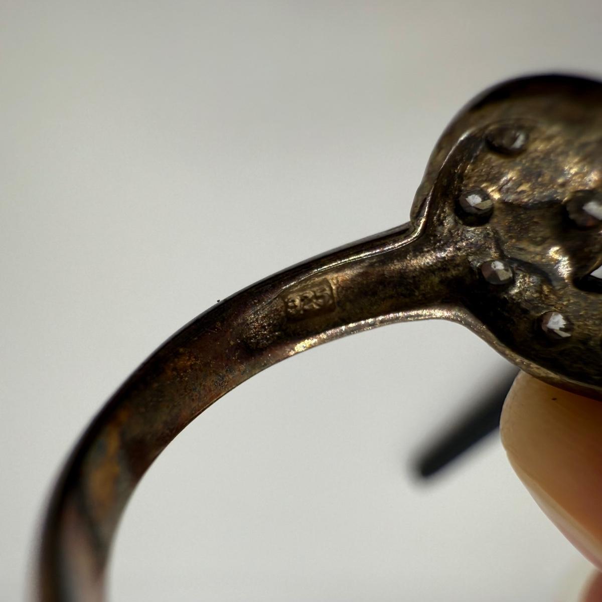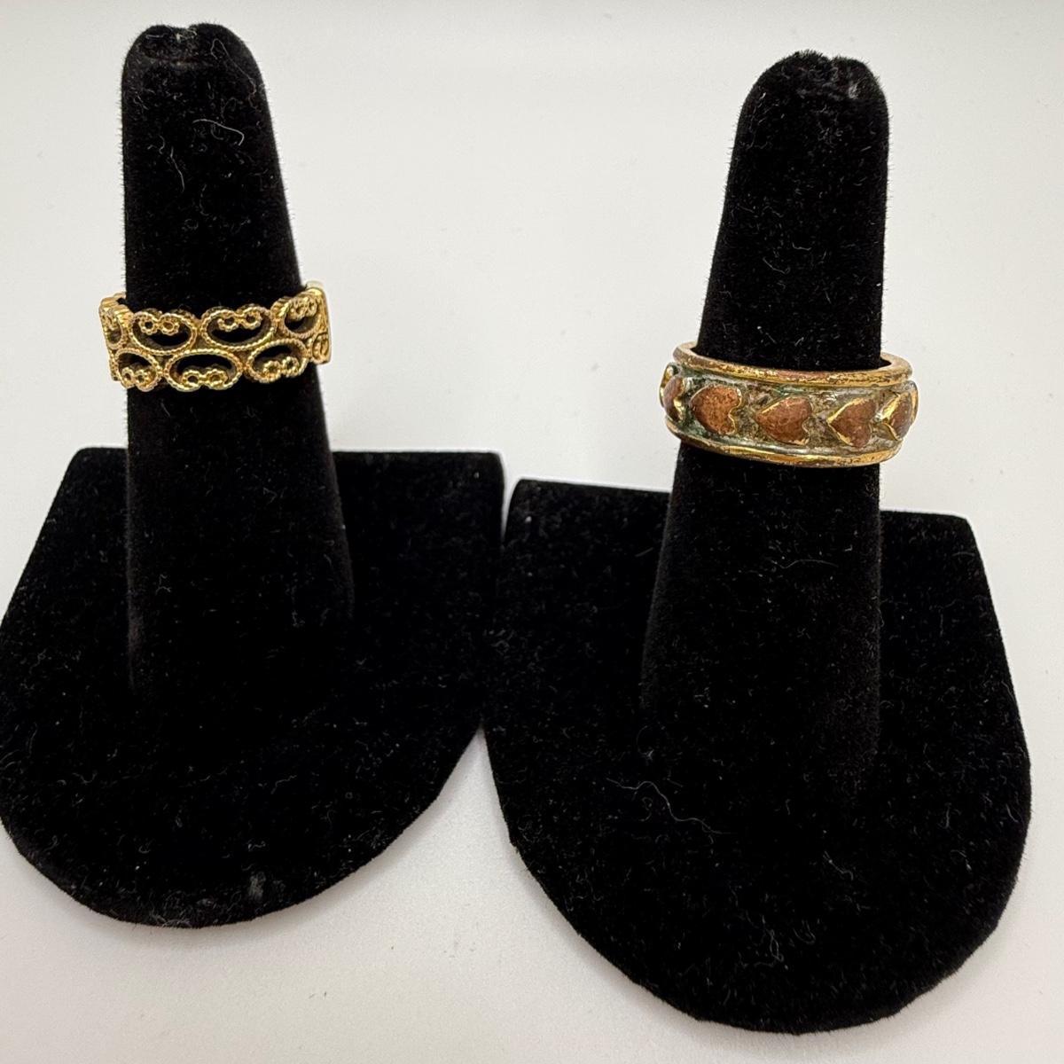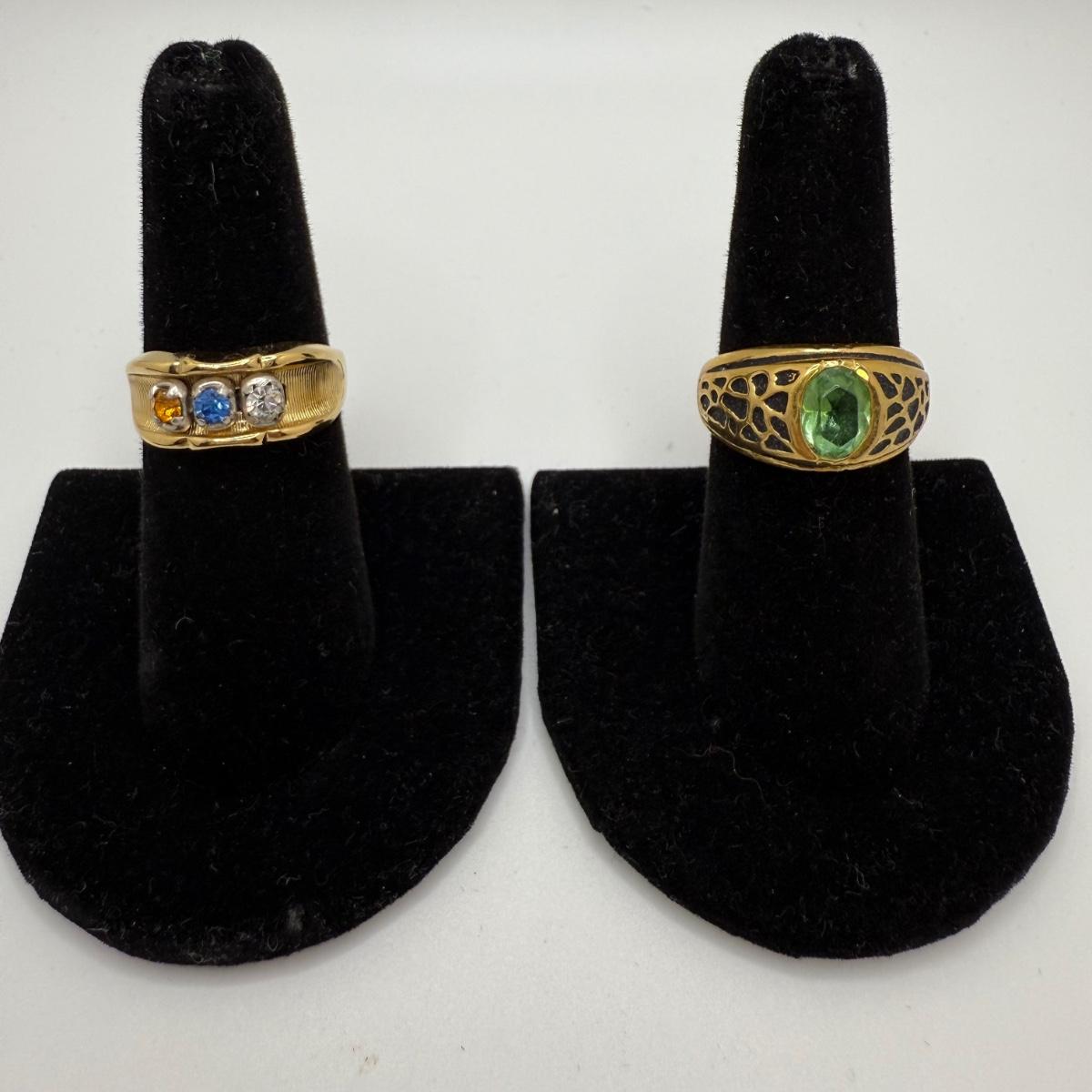 Large ring collection with 25+ rings. The two rings with the long black stones, as well as the ring with the large sparkly round gemstone and the one with a knot design, are marked as 925/Sterling (all shown together in the last photo). Many others have marks. Some overall wear and condition issues. Please see photos for inventory and details. If no picture is shown inside the band, no marking was found. Most rings are around size 6/7/8.