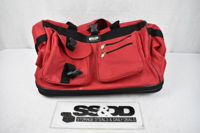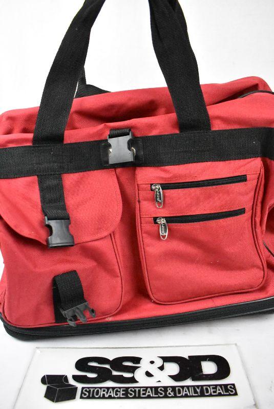 Large Rolling Duffle Bag. Missing 1 Wheel, Red, Expandable