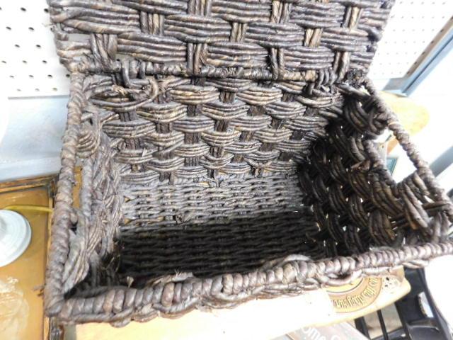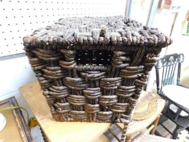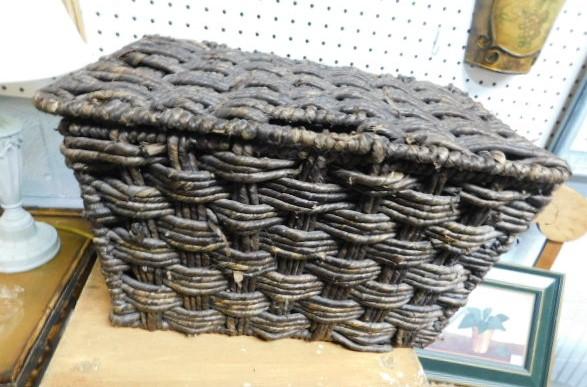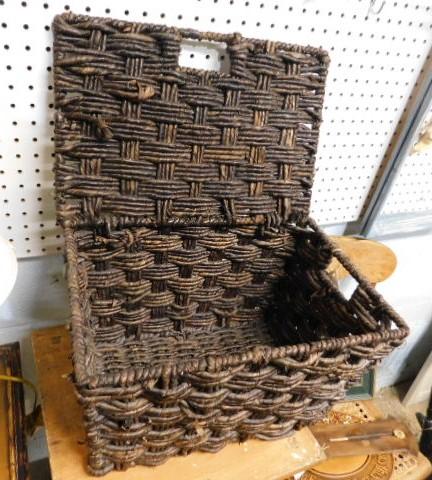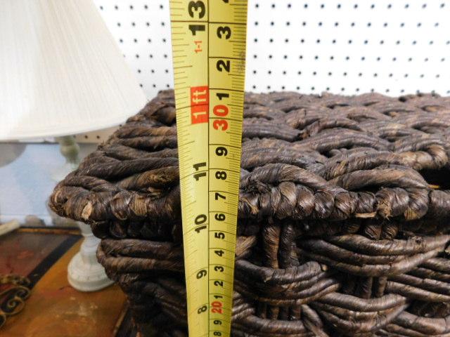 Large Rope Weave Storage Lidded Basket 16"x12"x10" heavy and nice appearance