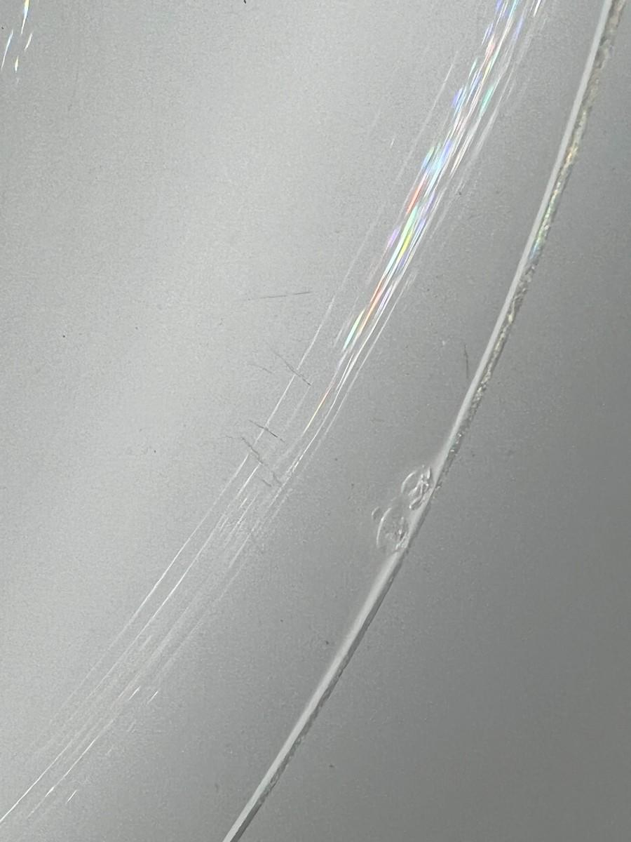 There is a light chip/scratch pictured above, but there is no other significant damage and is in overall good decorative condition. Check pictures for more details and for sizing.