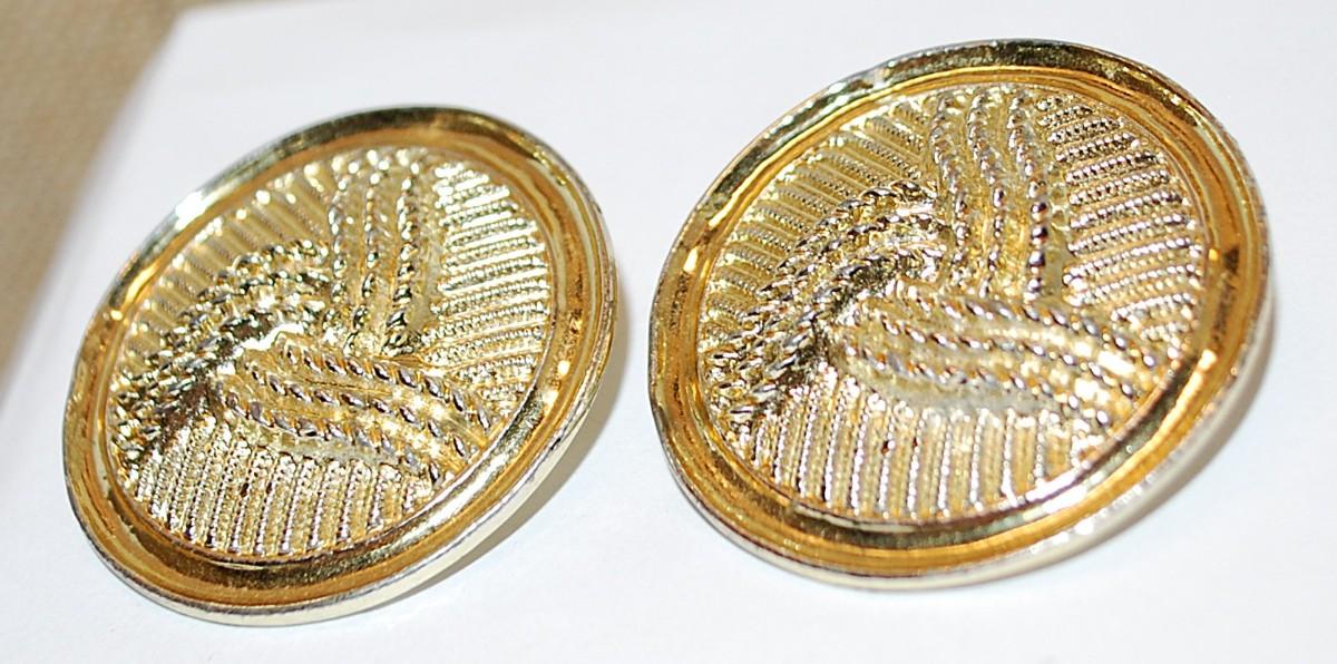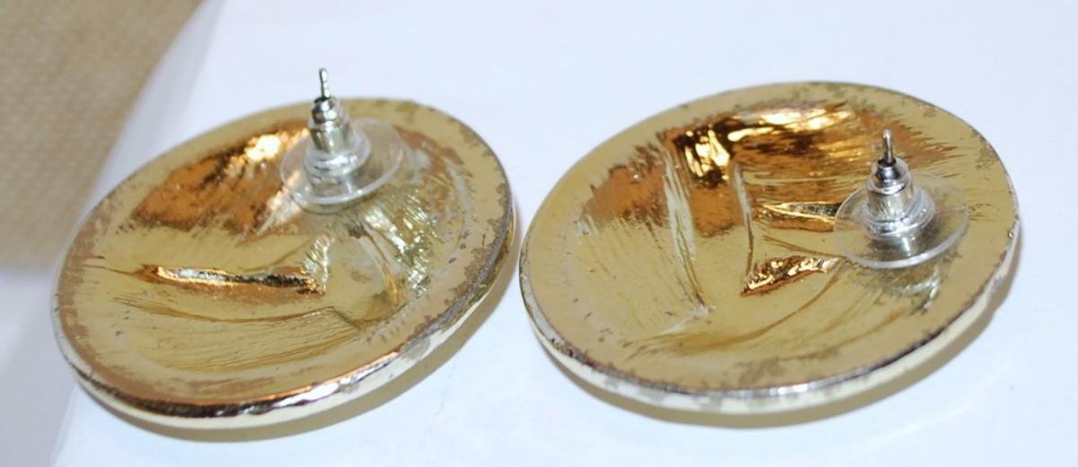 Large Round Gold-Colored EARRINGS (1½" Diam.) with Raised Lines and a Stud Clasp