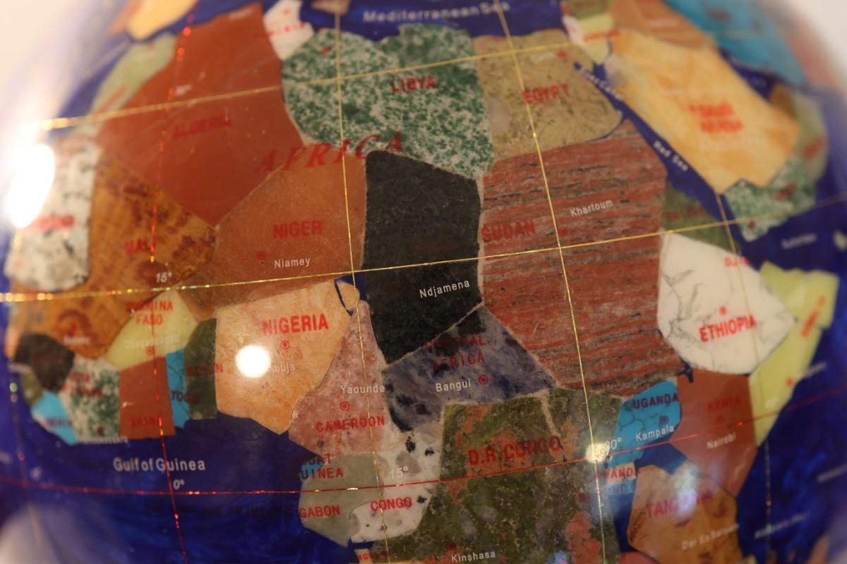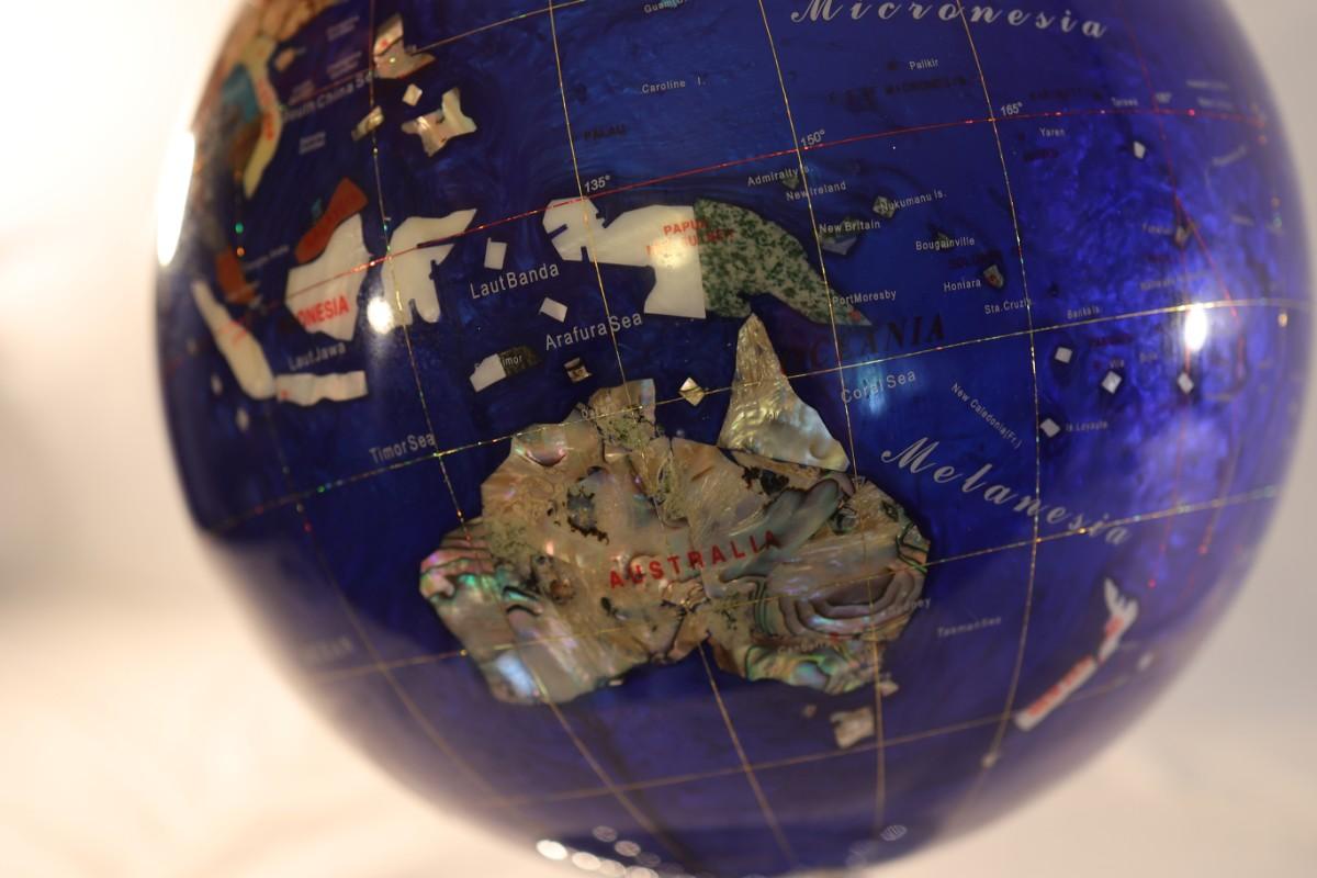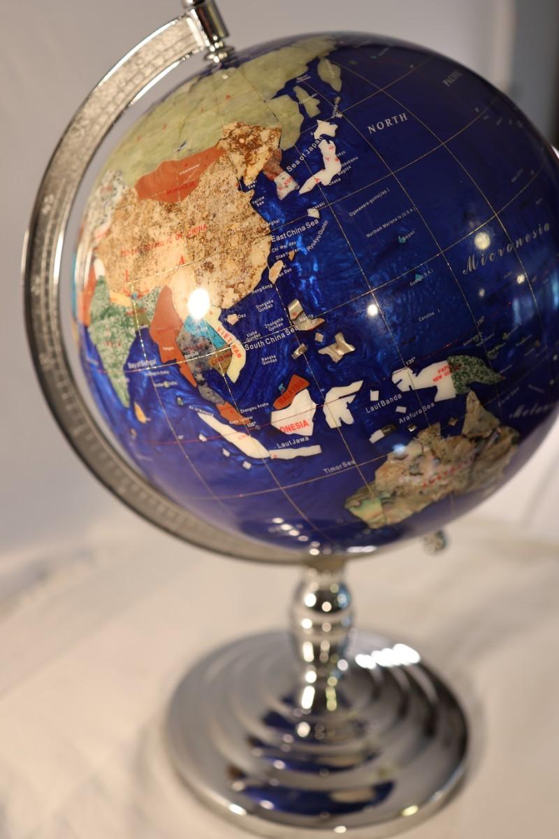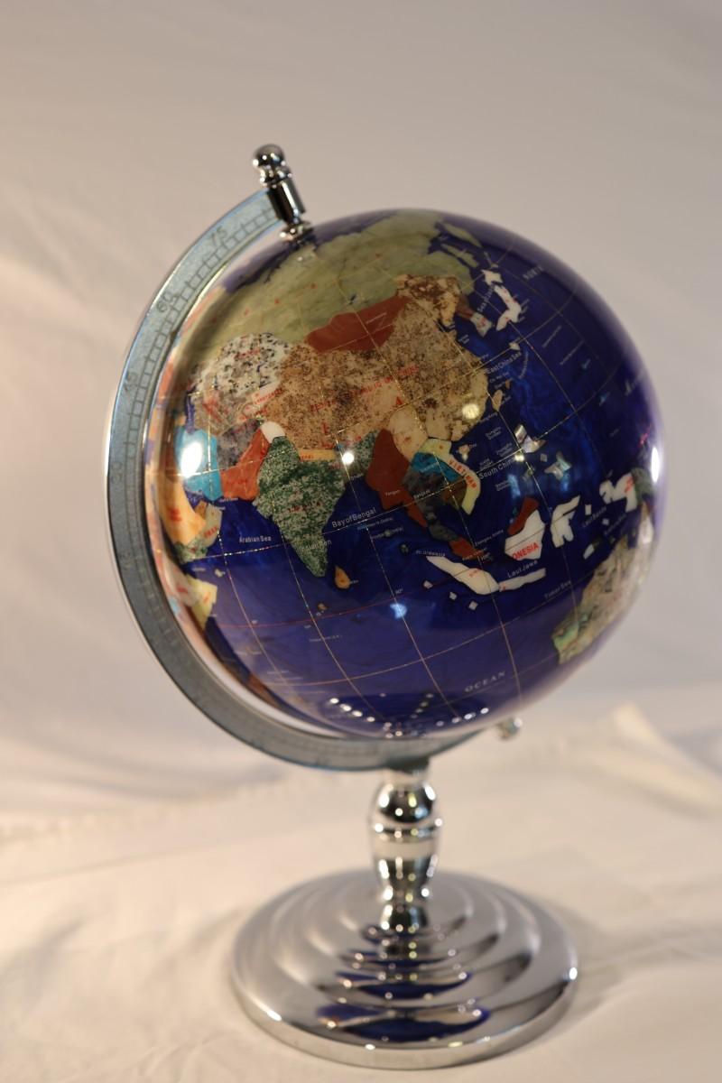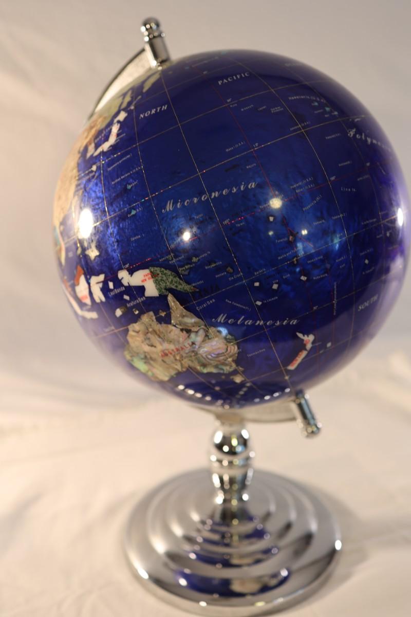Large Royal Blue Gemstone World Globe on Chrome Stand