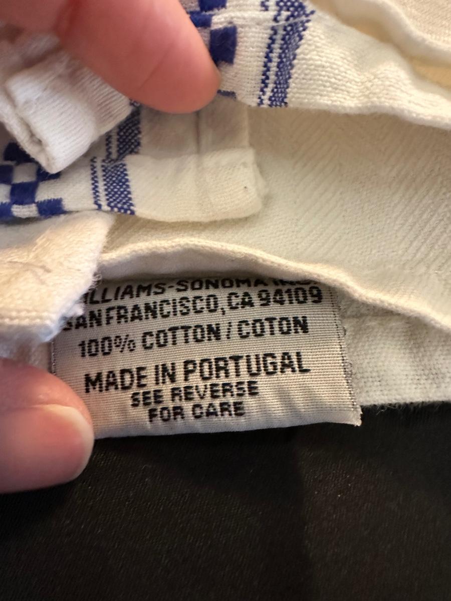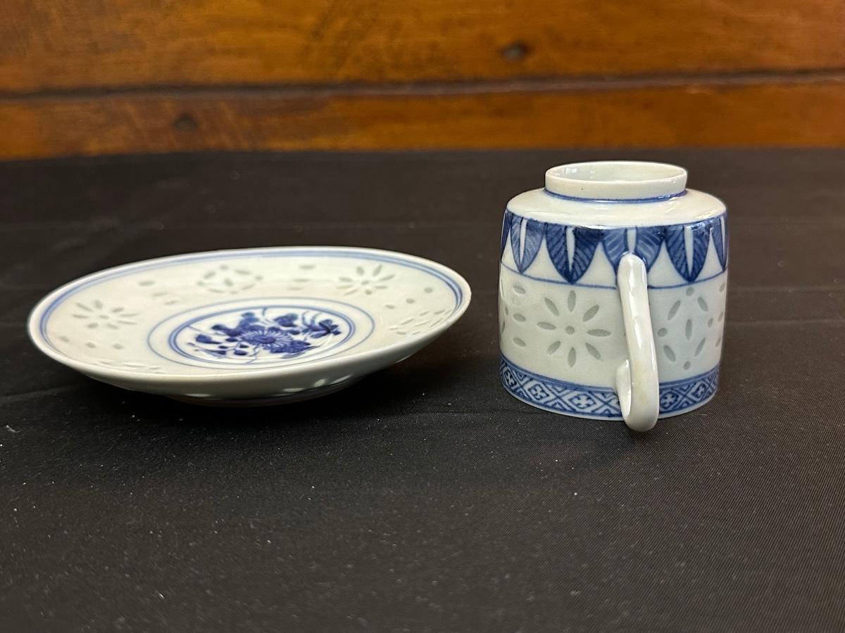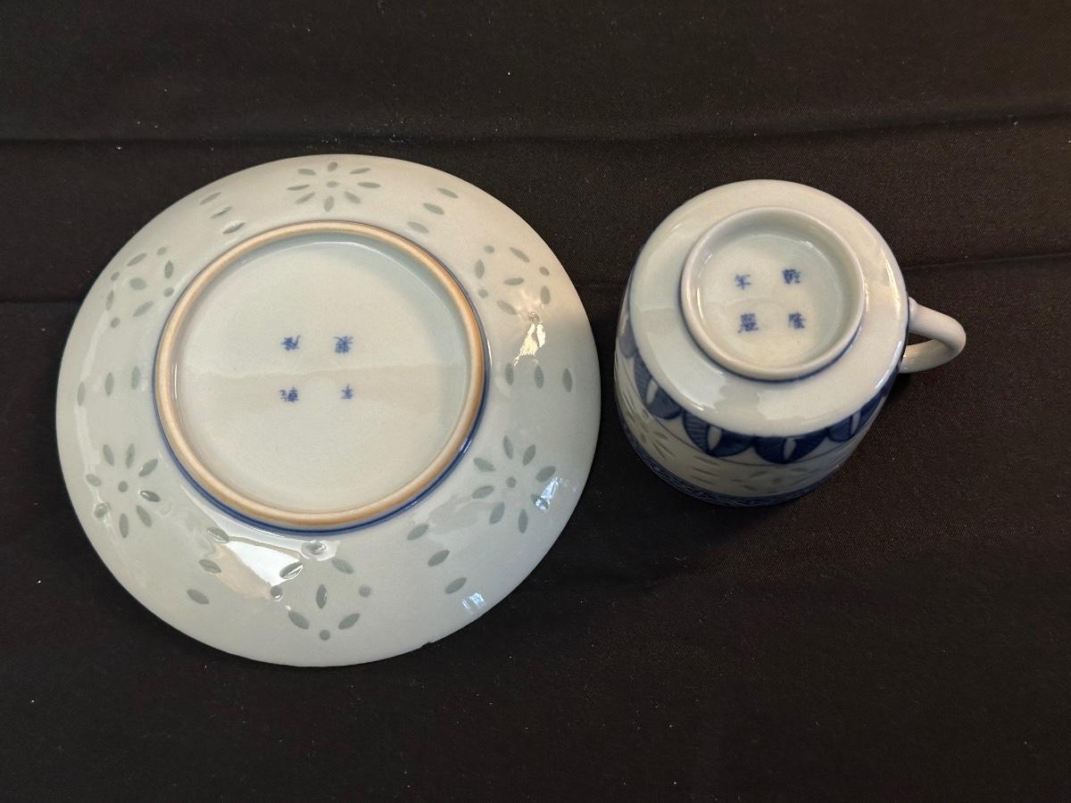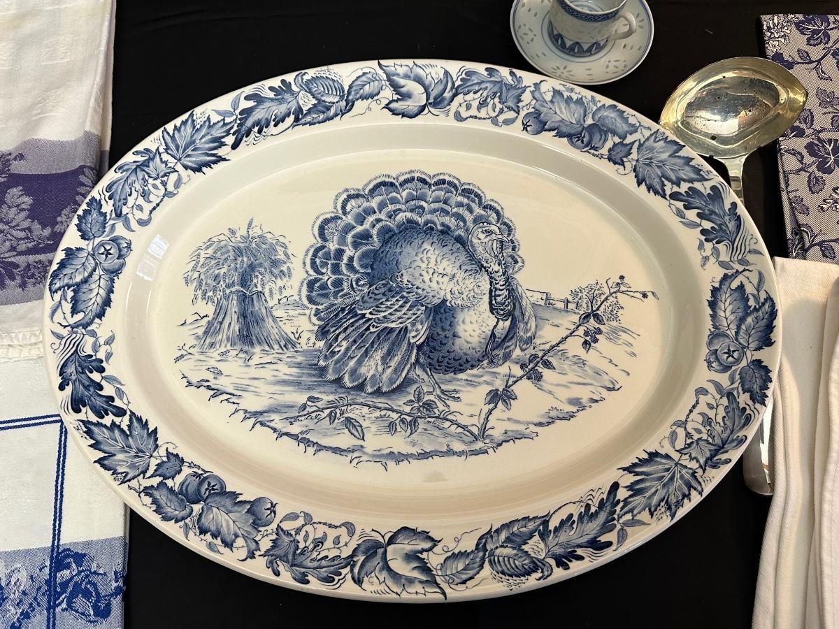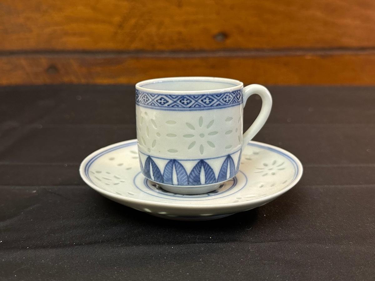 A collection of items with crisp blue classic patterns, including a silver plated ladle of Georgian Design by Hall Mark SG and a tea cup and small plate! Please note, there are a few blemishes on different towels, however overall in great shape. Some of the towels are made by William Sonoma and Martha Stewart.