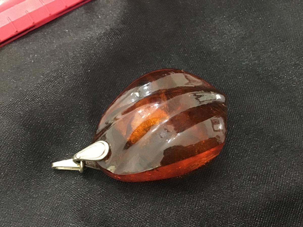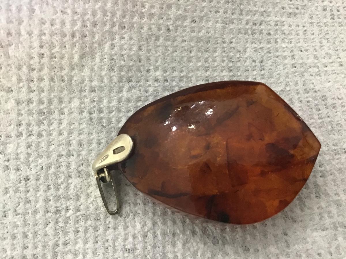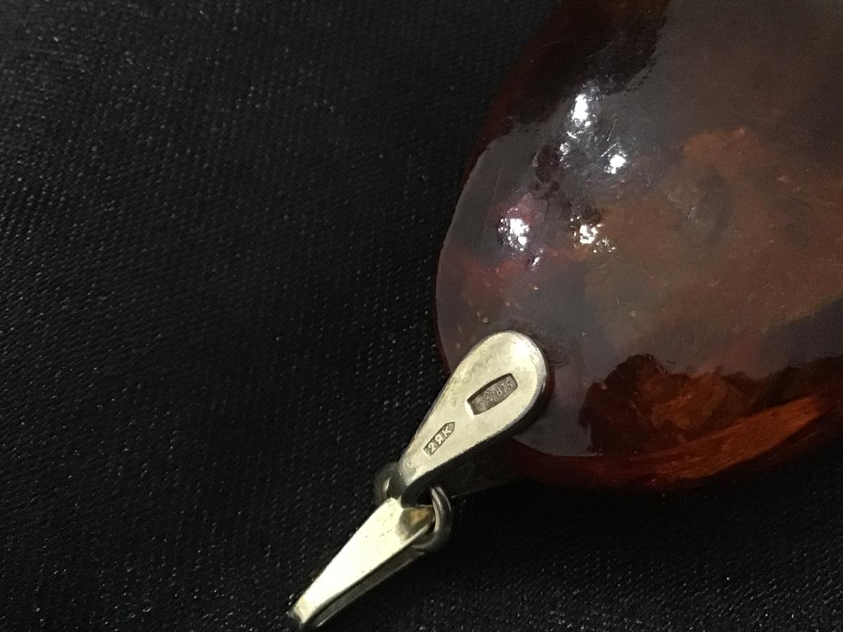 Large Russian Honey Amber Pendant 875 Silver Gold Plated Marked