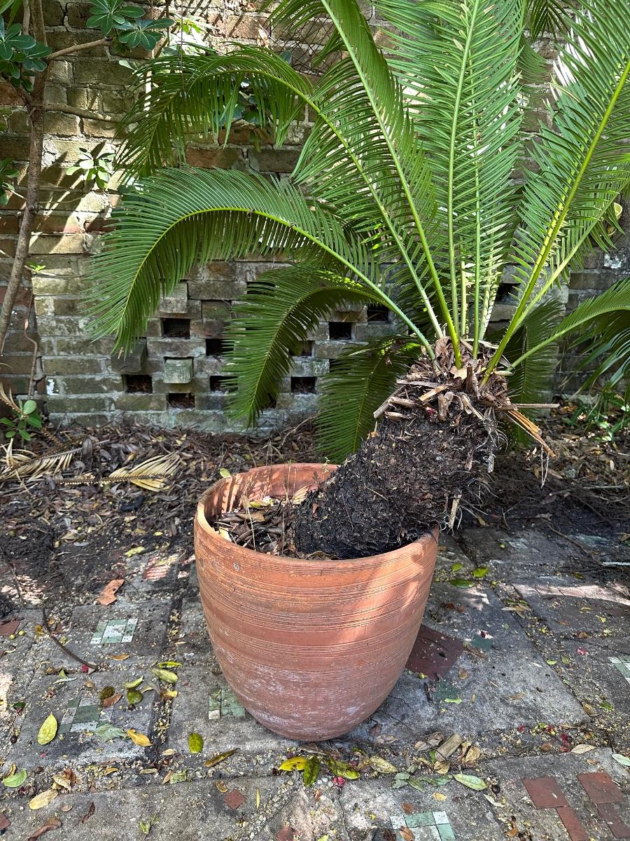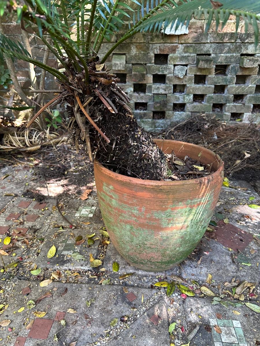 Large sago palm pin terracotta pot