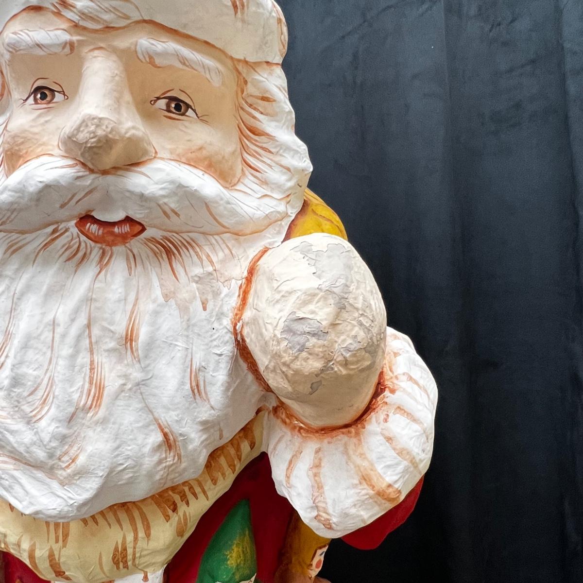 Large Santa 3 Foot Paper Mache Vintage Good Condition only a few areas the color has some pealing: mainly on the hands and face but minimal considering the age of the item