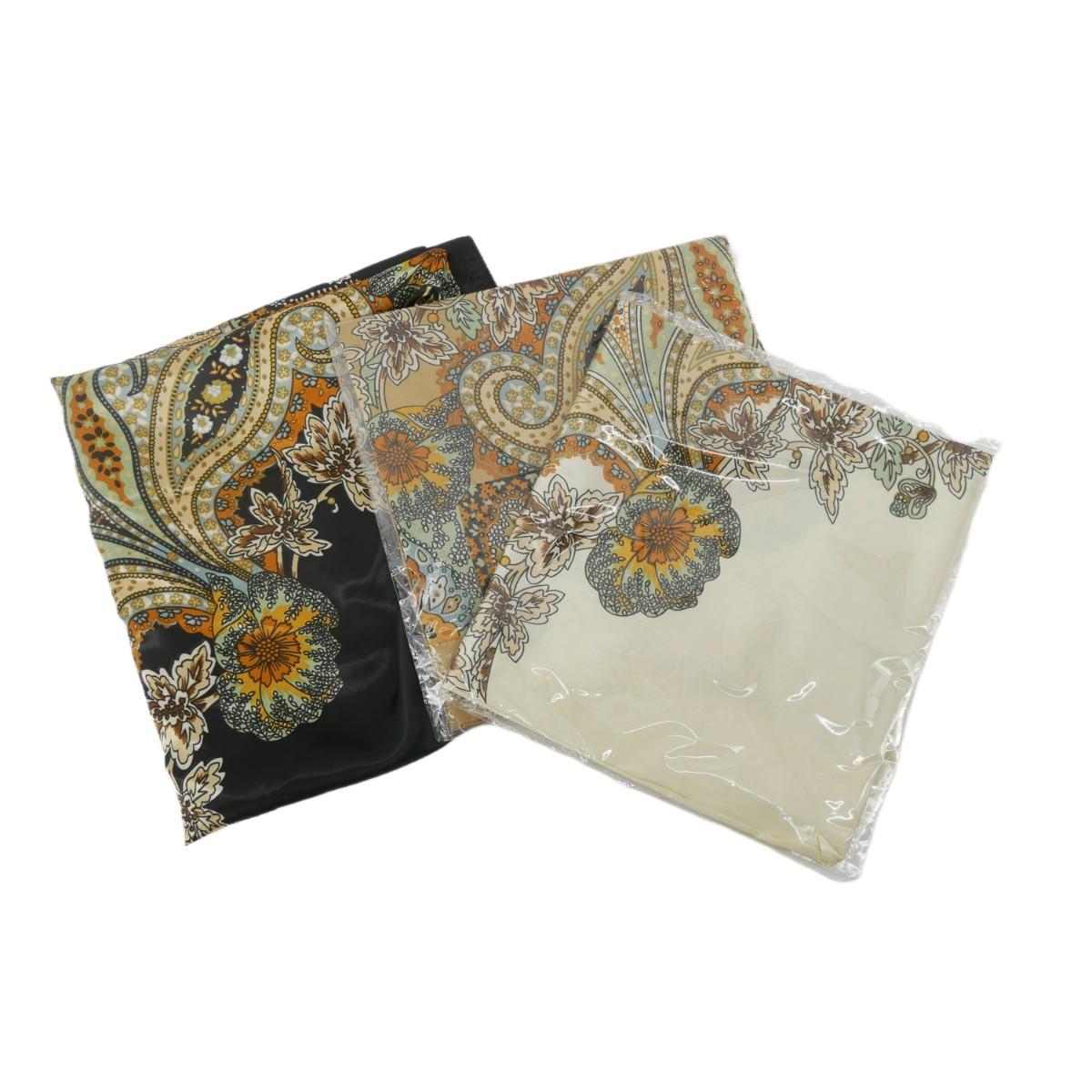 Three large silk style scarves, approximately 35" x 35". Two unopened, one opened and in good condition.
