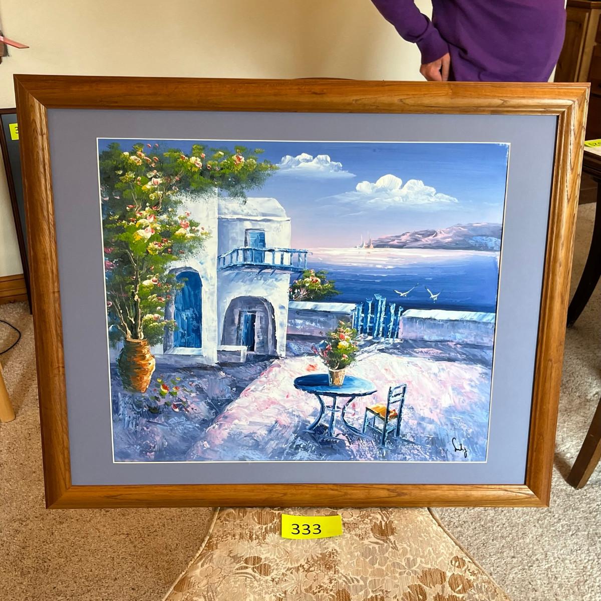 Signed, but can't make out the signature. Quite a large painting! Great condition.