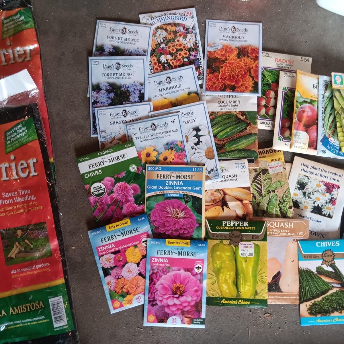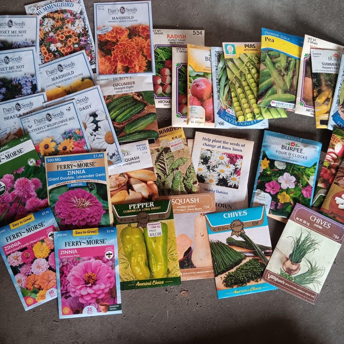 LARGE SELECTION OF FLOWER AND VEGY SEEDS, GARDENING TOOLS AND MORE