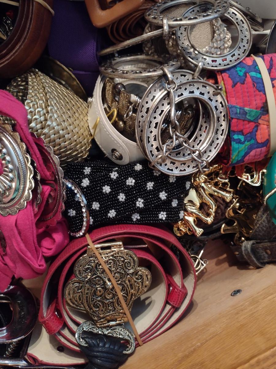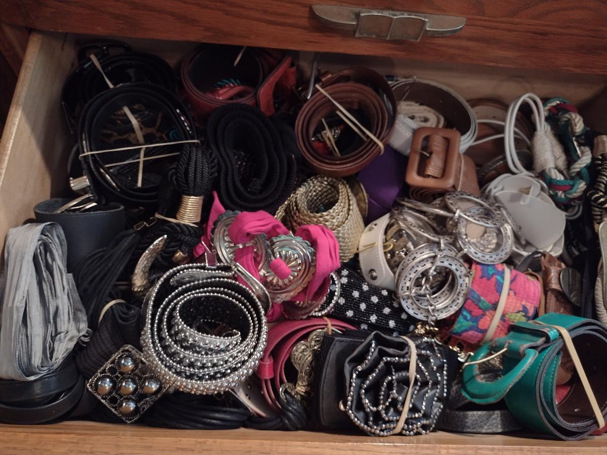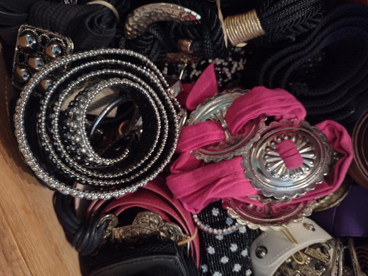 Large Selection of Ladies Belts. Most unmarked for size. Some size large.