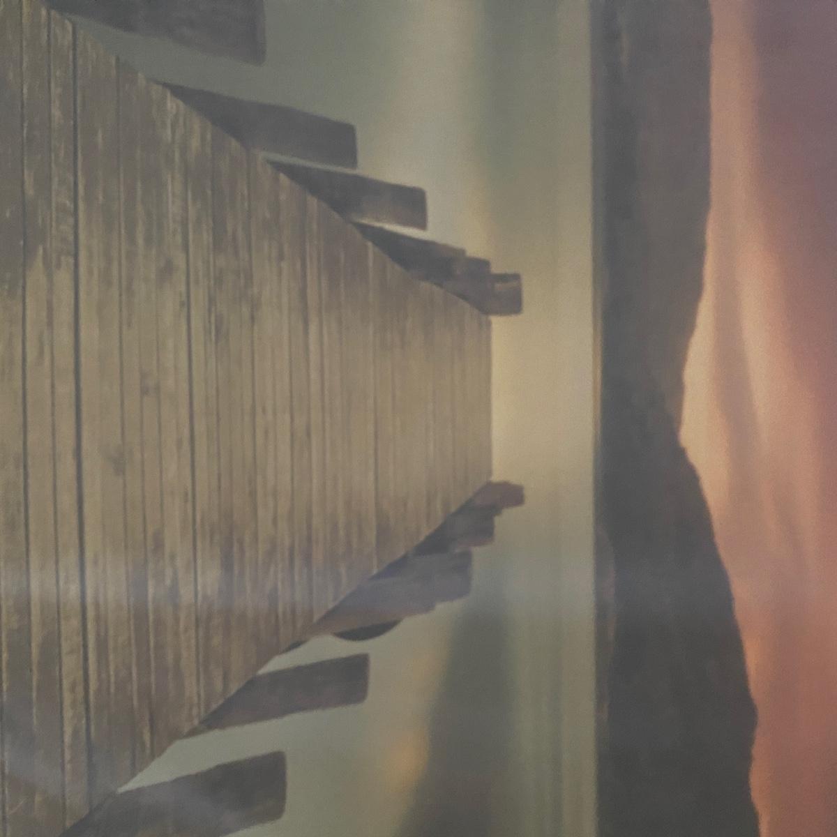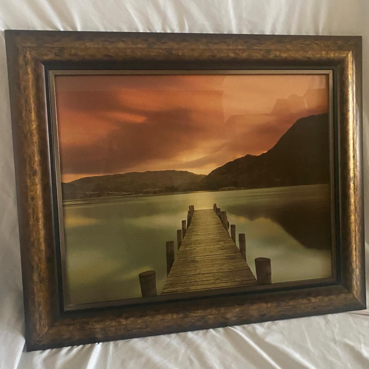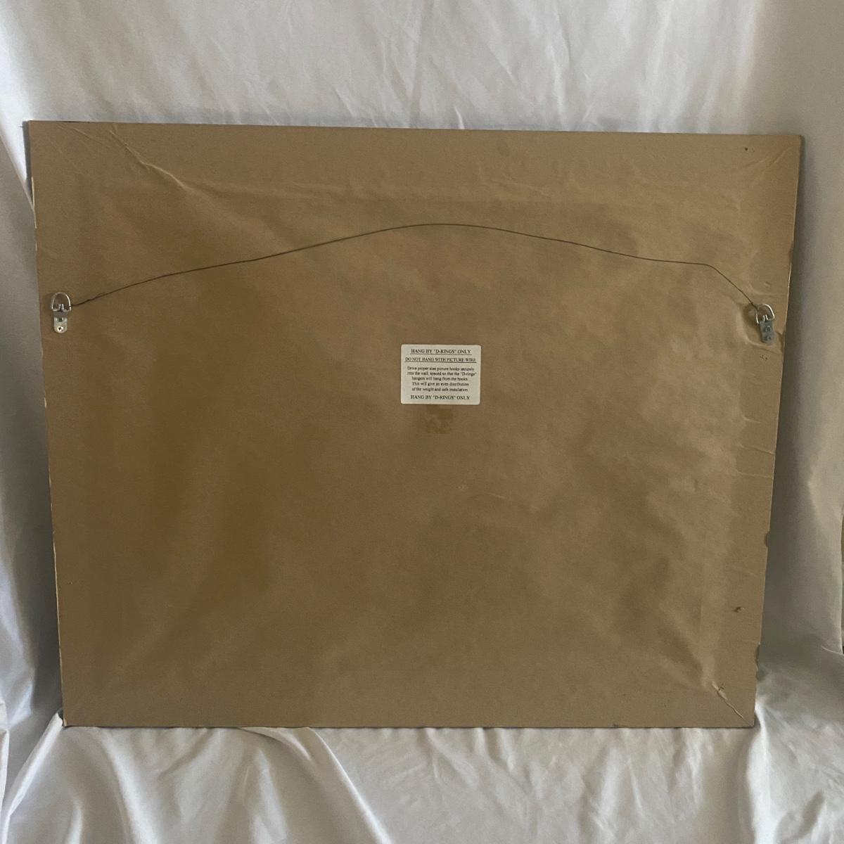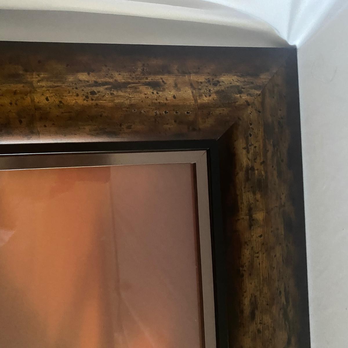 Large framed art. Measures 37”W x 31”H. No signatures found. Appears to be a photo. Frame appears to be wood with a metallic finish.