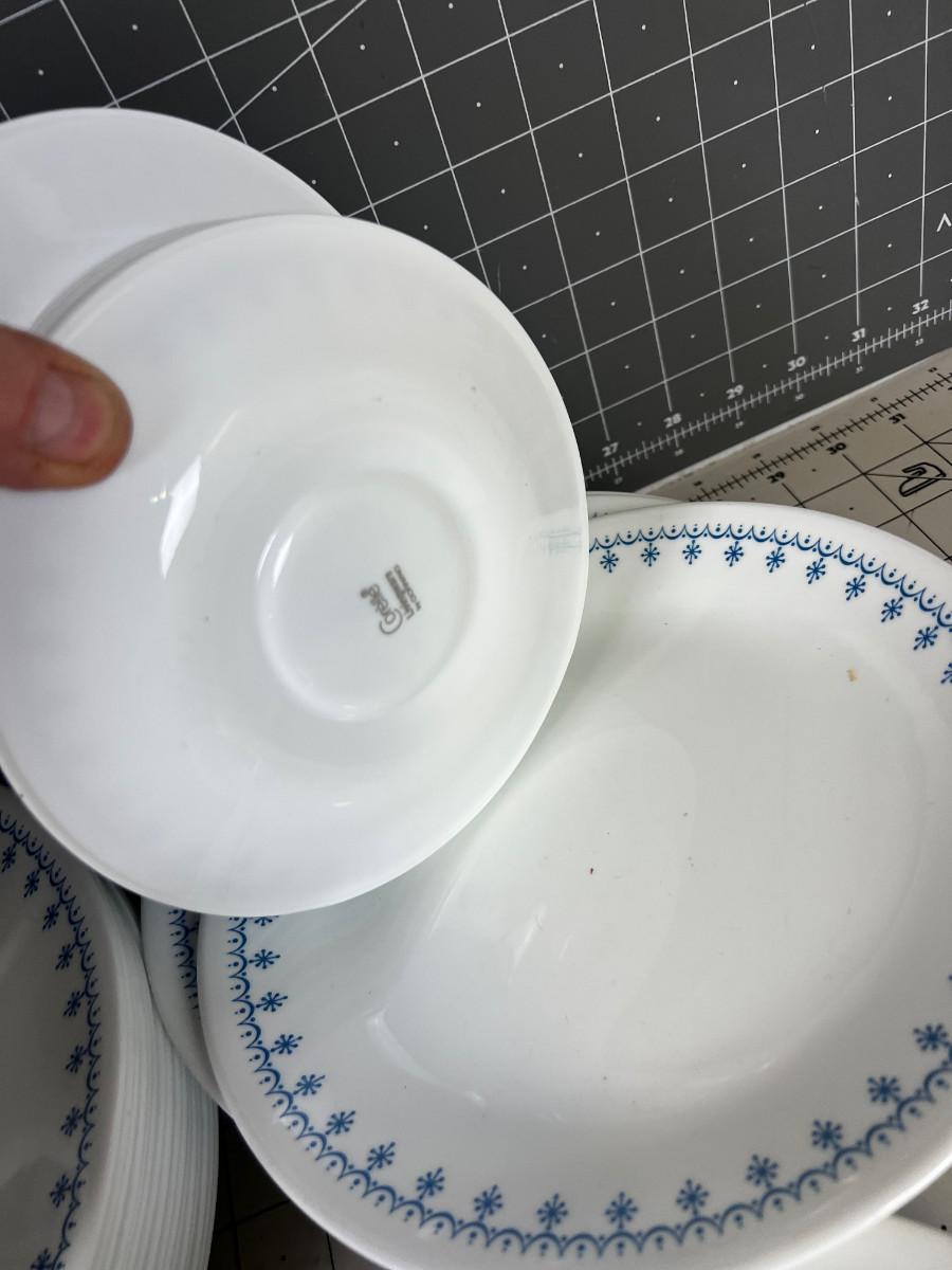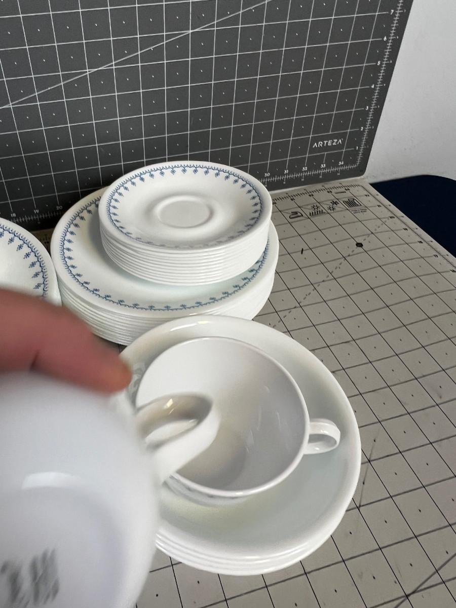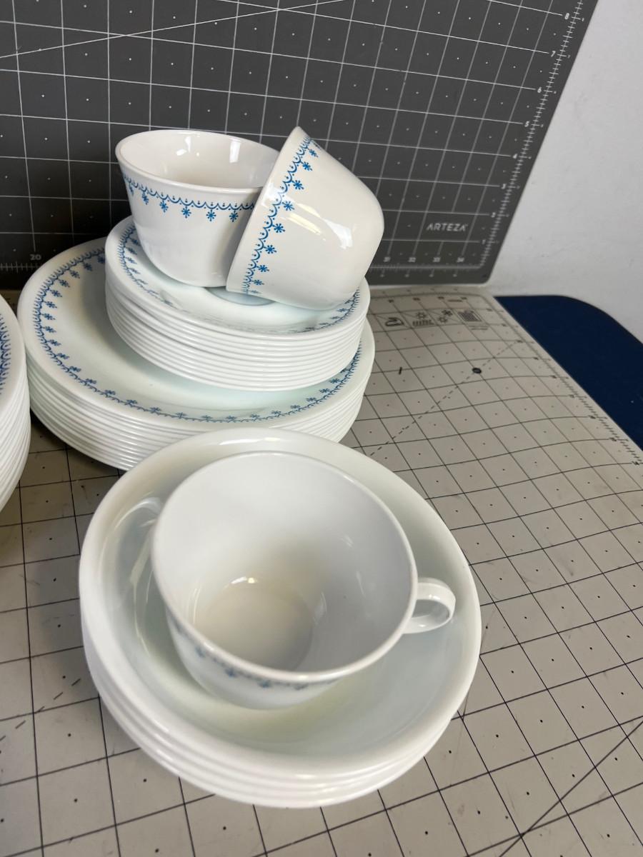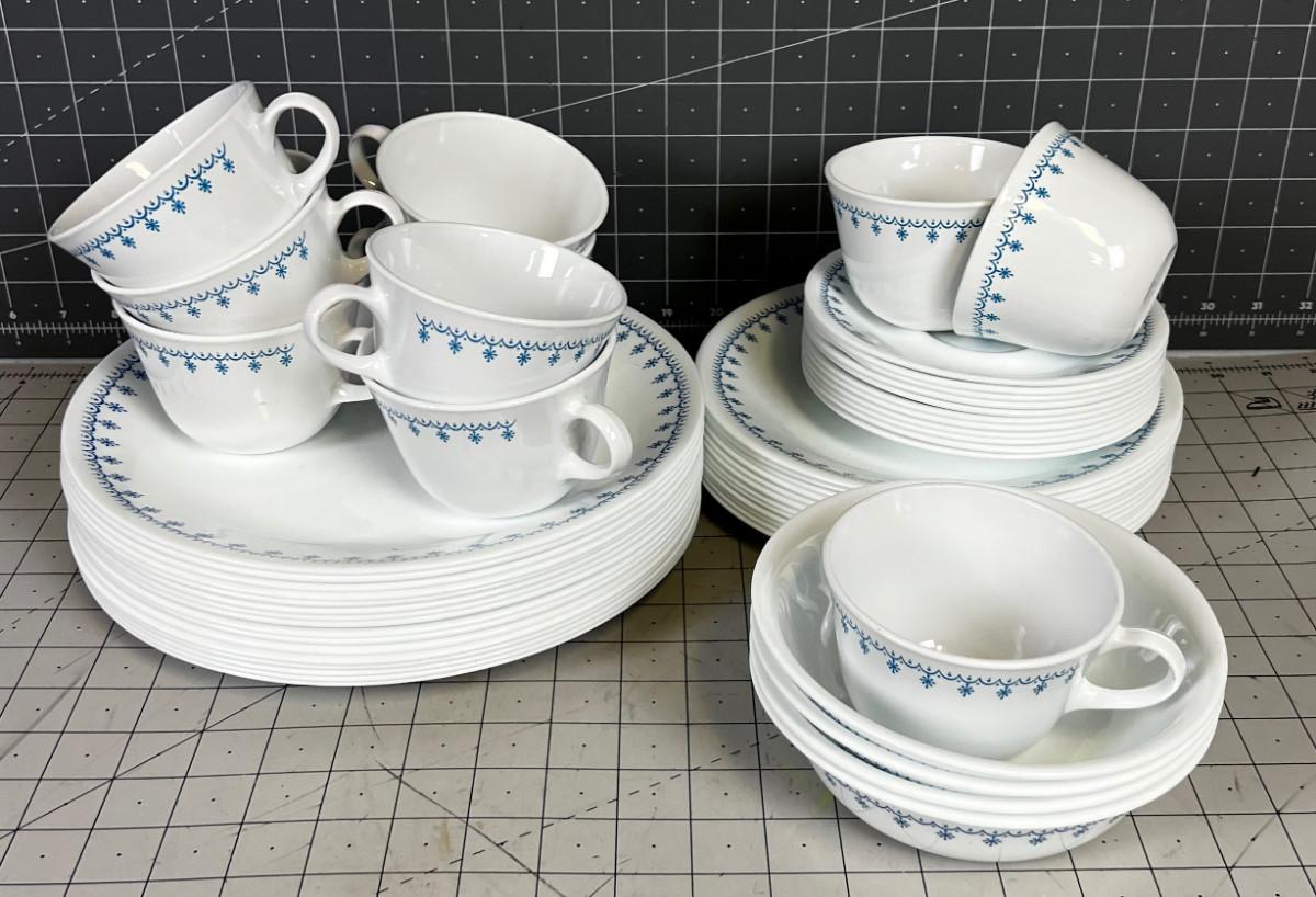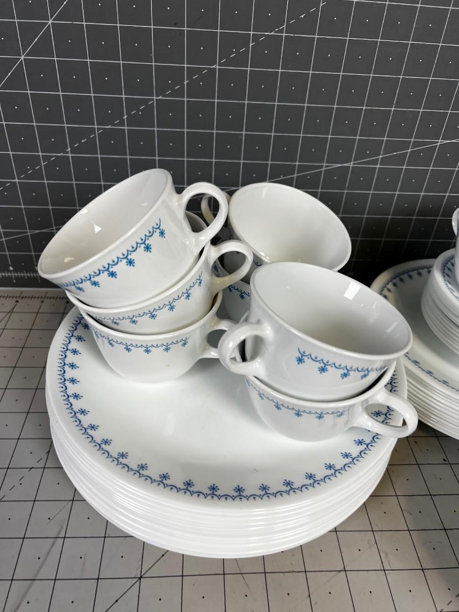 Large Set of Blue Corn Flower Correl Dishes