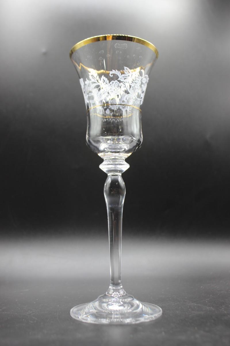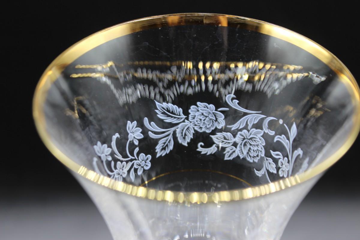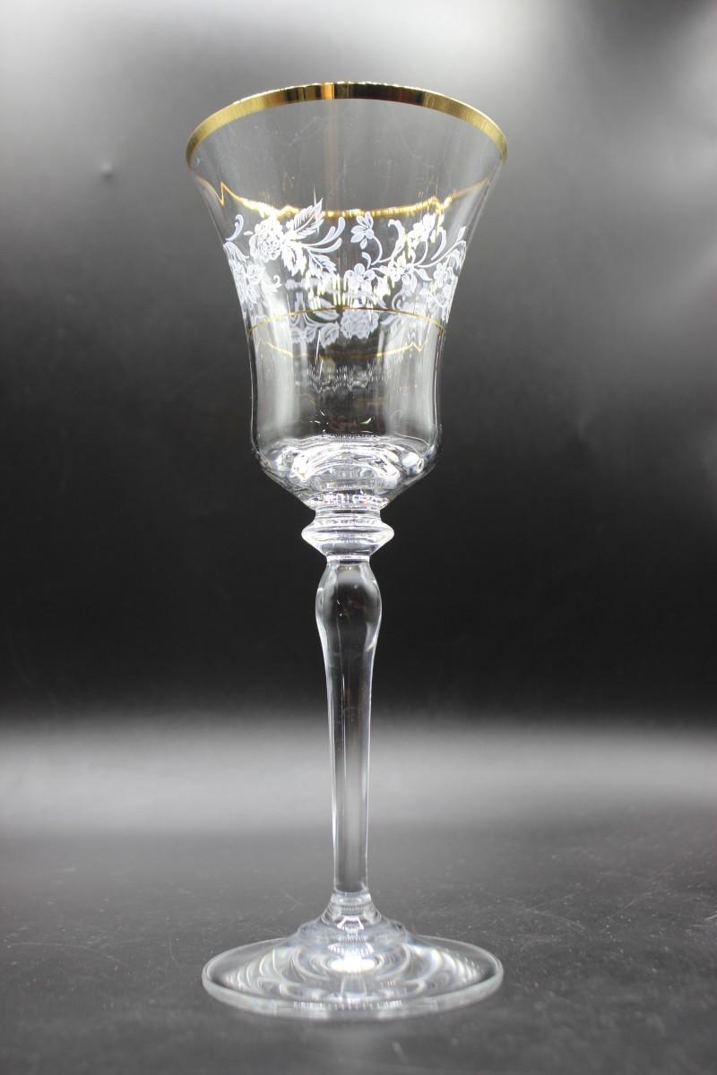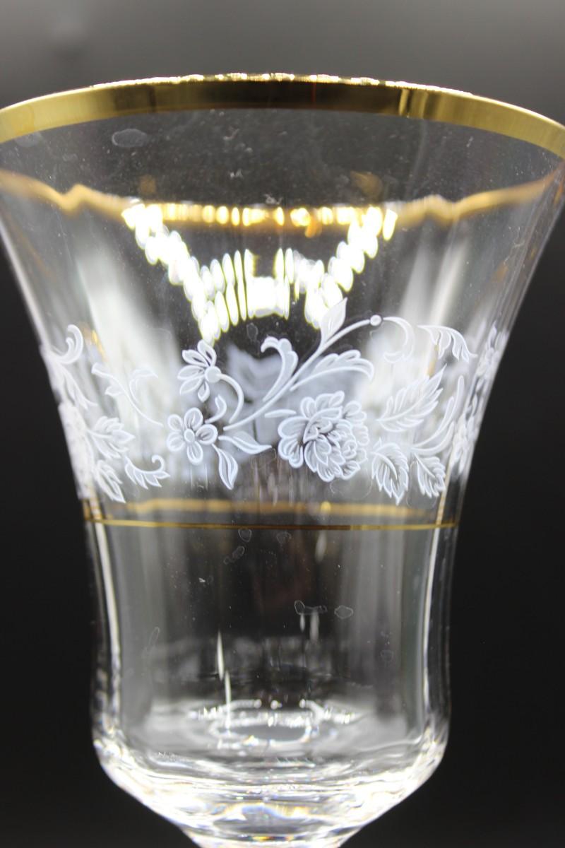 Mikasa "Antique Lace" stemware set. 5 different glass sizes, 55 pieces total. Delicate floral pattern with gold rim. Good condition.