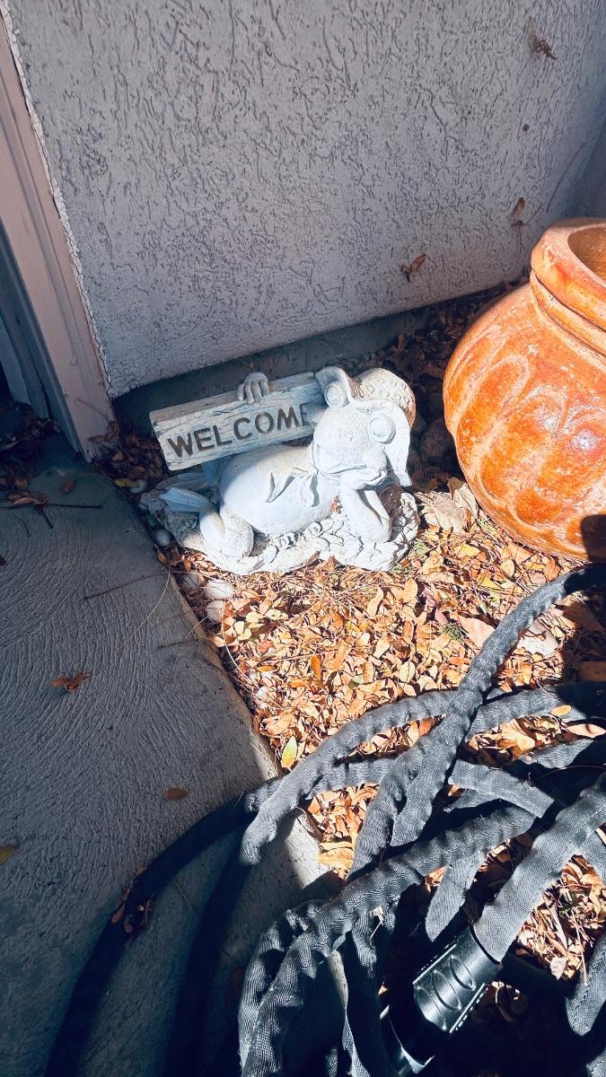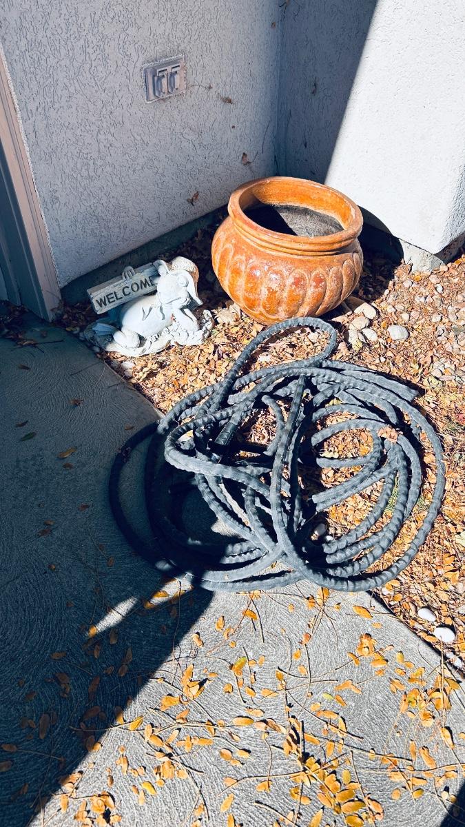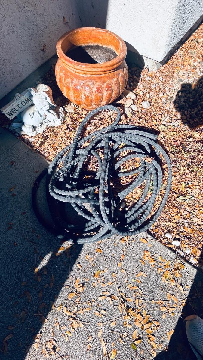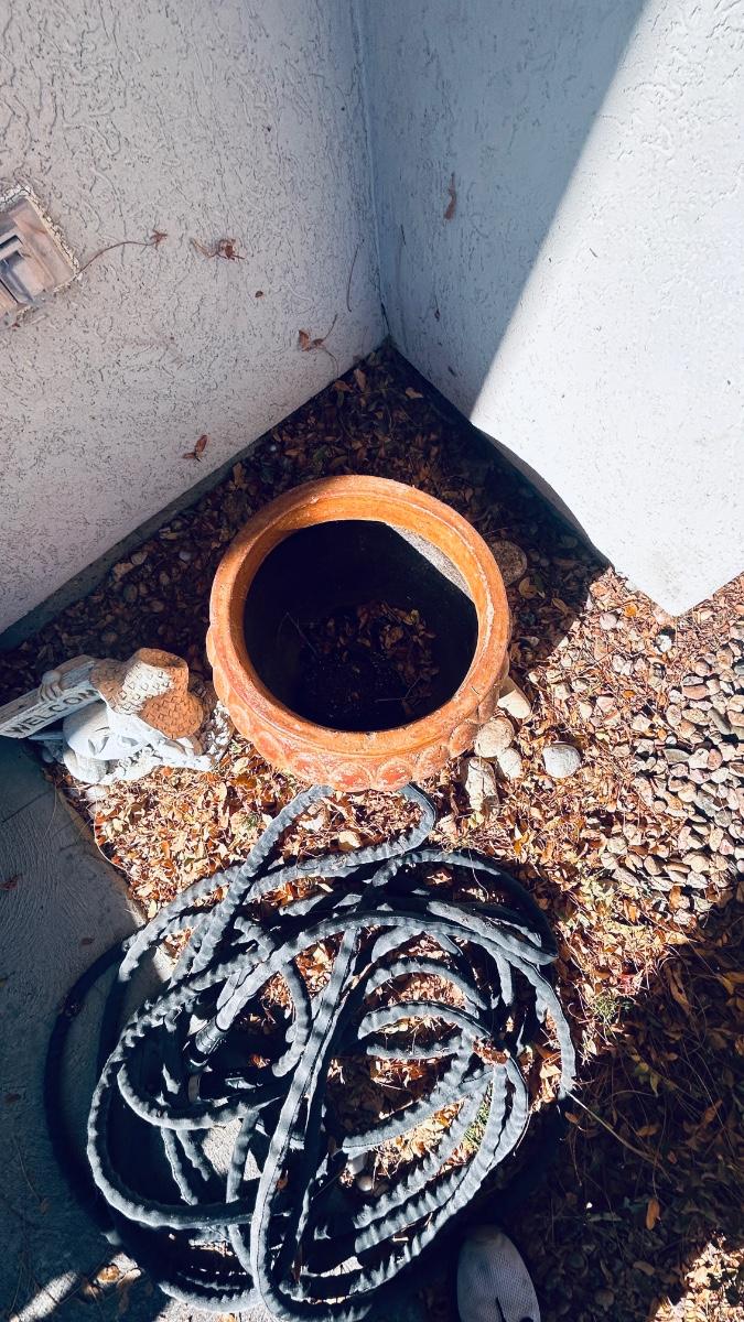 LARGE SHALLOW CLAY PLANTERS, GARDEN HOSE AND CUTE LITTLE FROG