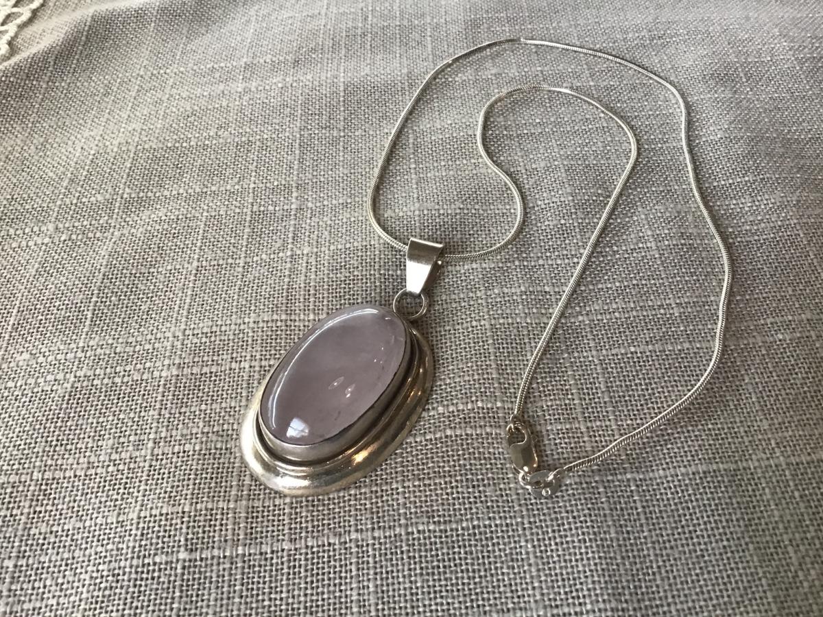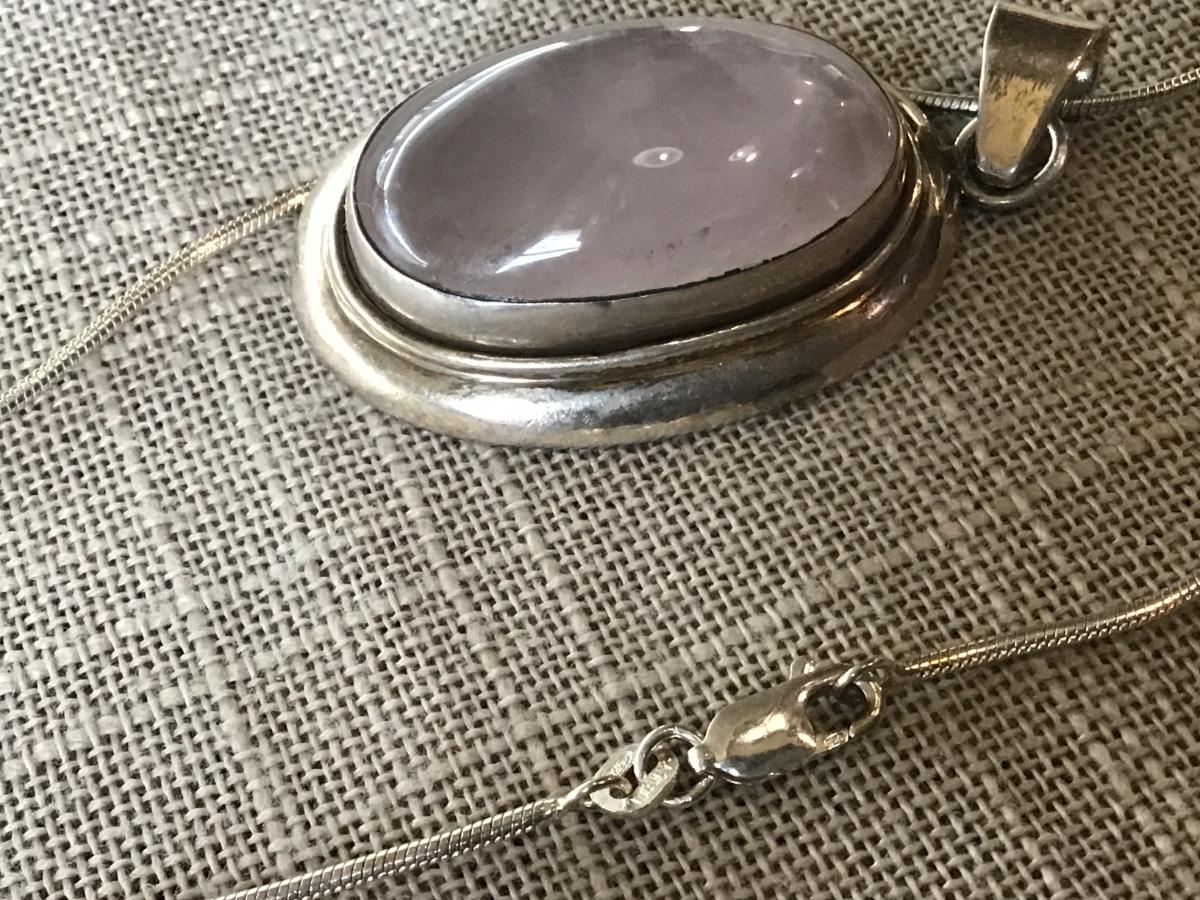 Large Silver 925 Pendant Pink Stone with Italy 925 Chain