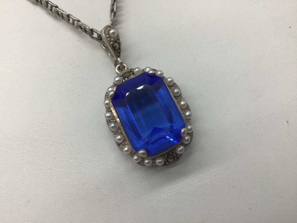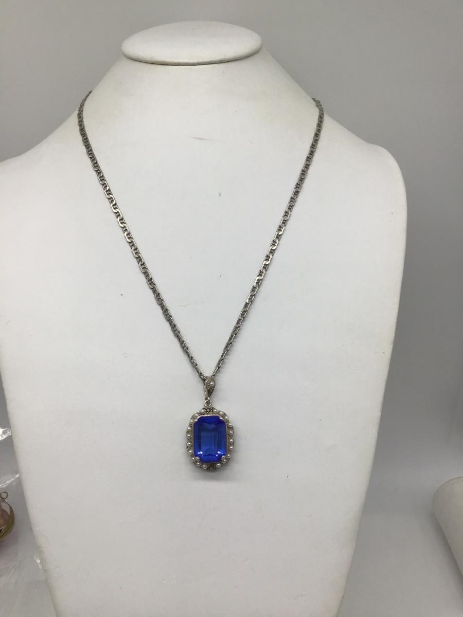Large Silver 925 Pendant With Blue Center Silver Italy 925 Chain