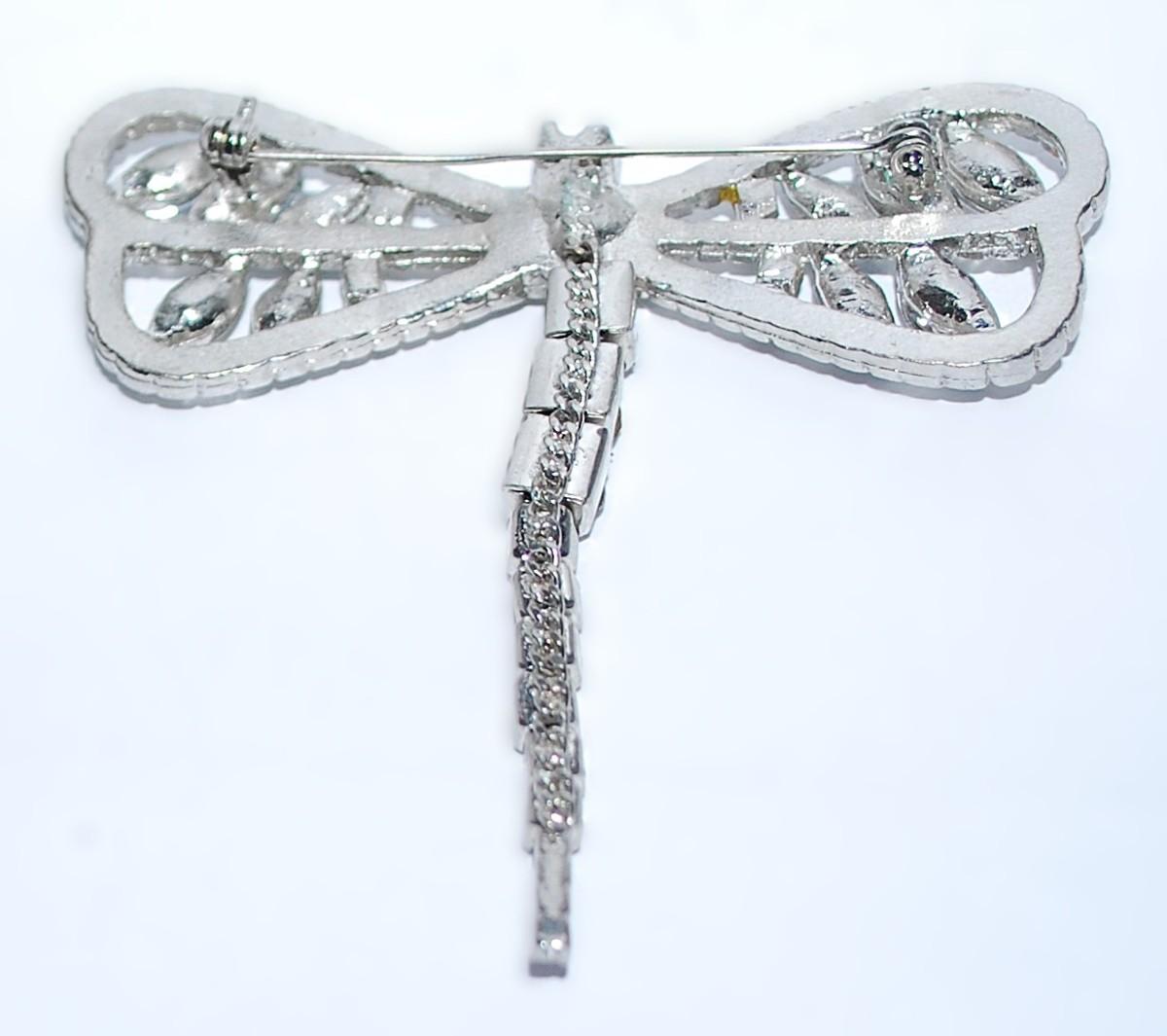 Large Silver Colored DRAGONFLY BROOCH (2¾" x 2½") with Segmented Moveable Tail on a Silver Tone Setting