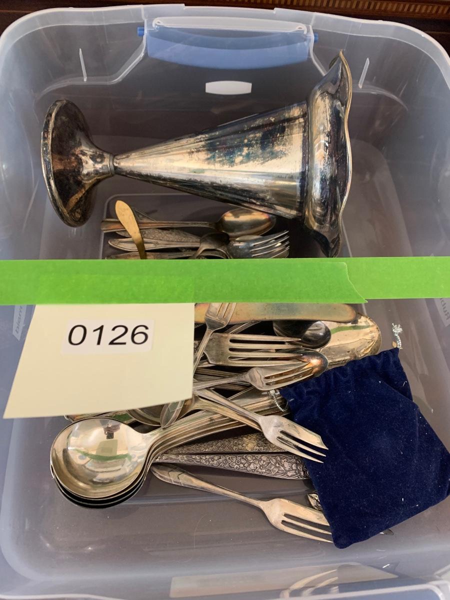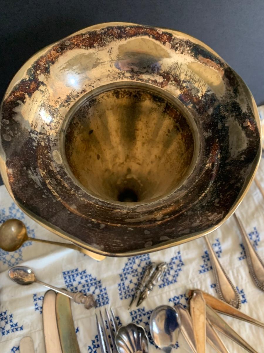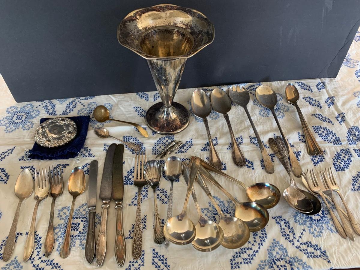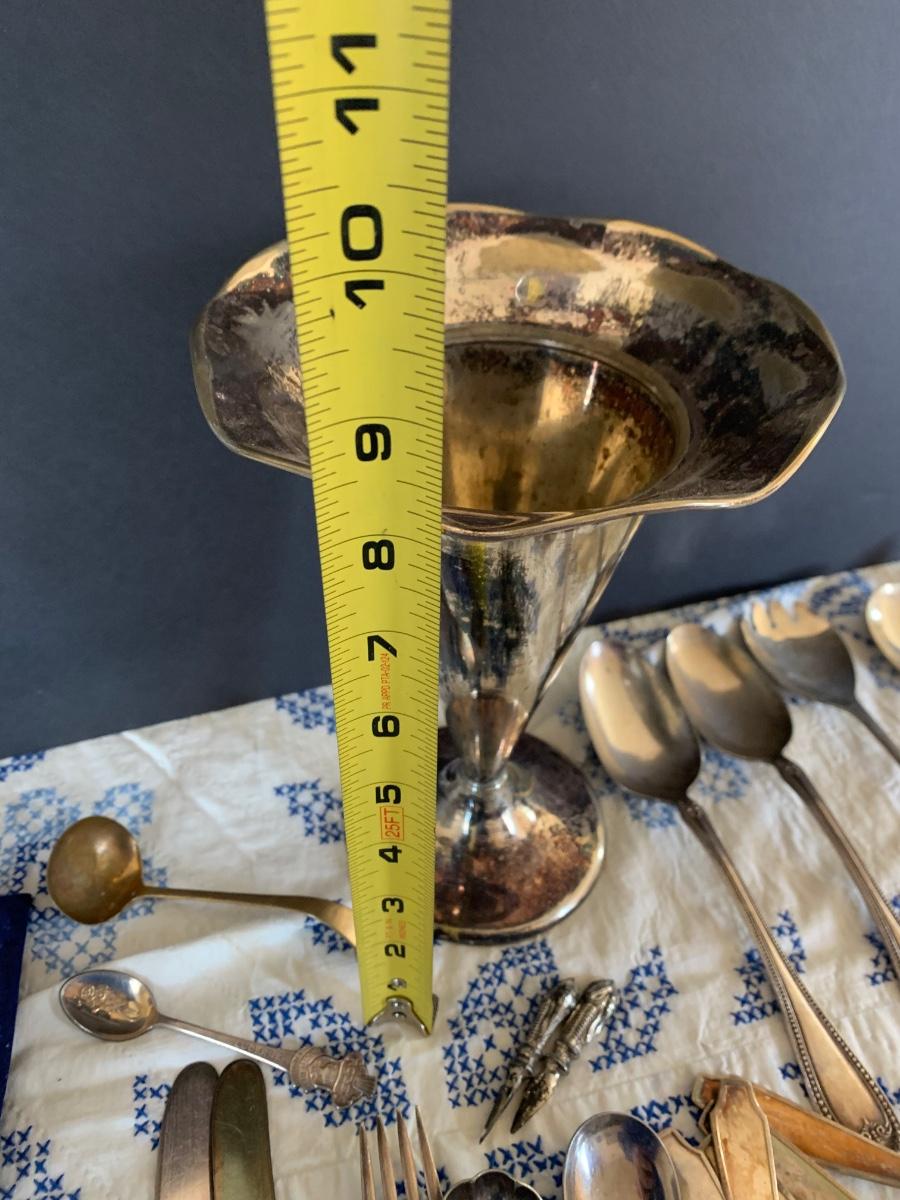 Large Silver Plate Lot Looking Glass Flatware Vase